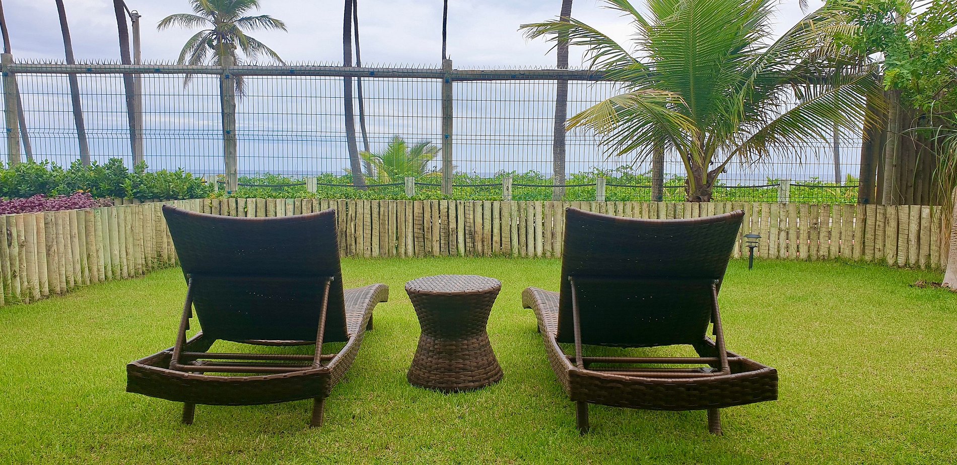 We offer a comfortable and cozy environment, perfect for enjoying with friends and family. The property has 1 bedroom on the ground floor and 2 suites on the first floor (one with a Smart TV and ocean view), all air-conditioned. Living room with a comfortable reclining sofa and 50” Smart TV. In the garden with outdoor furniture, you can enjoy the sea view and relax in a hammock. The American-style kitchen is fully equipped with a stove, refrigerator, microwave, water filter, coffee maker, as well as utensils and appliances. There is also a powder room and a service area with a washing machine.