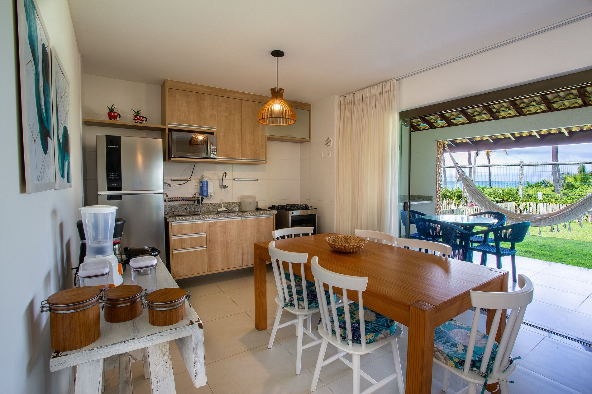 Our apartment is located in the Ykutiba Imbassai Residential Condominium, right in front of the river meeting the sea, where access to the beach through the main entrance is a few minutes' walk away (access to the bike path is only available for stays longer than 7 nights), and there is also a boardwalk with a bike path that follows the course of the Imbassai River.