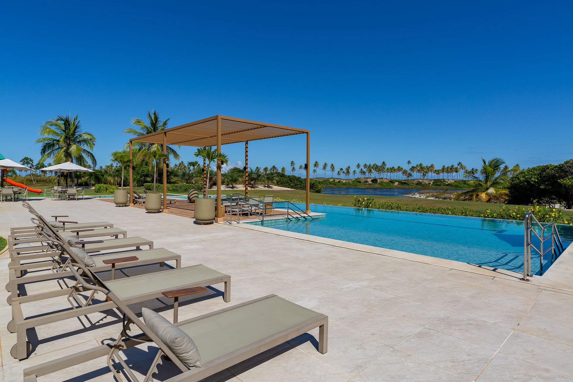 O condomínio possui localização privilegiada, entre a lagoa e o mar, proporcionando privacidade, segurança e diversas opções de lazer, como clube completo (piscina com borda infinita, piscina infantil, lounge gourmet, espaço kids, parque infantil, salão de festas), quadra de tênis e campo de futebol society.