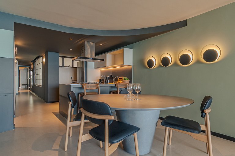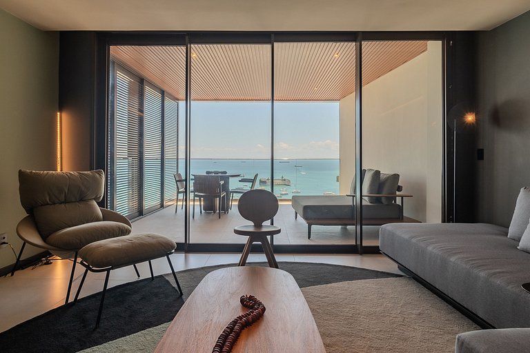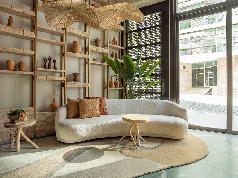 Com 02 quartos, o apartamento pensado pela arquiteta Viviane Vieira é climatizado e conta com enxoval completo, sala de estar e jantar, lavabo e cozinha equipada com utensílios e eletrodomésticos que facilitam o seu dia-a-dia. o ambiente é um verdadeiro tributo à produção artística local. O apartamento tem tons verdes que acolhem fotografias em quadros que retratam o artesanato em argila e a modernidade de um ambiente automatizado desenvolvido para ser totalmente funcional. A vista da varanda para a Baía de Todos os Santos, que se estende de maneira acolhedora, completa essa experiência sensorial única.