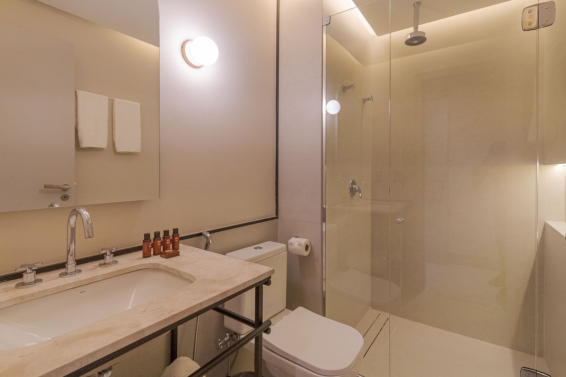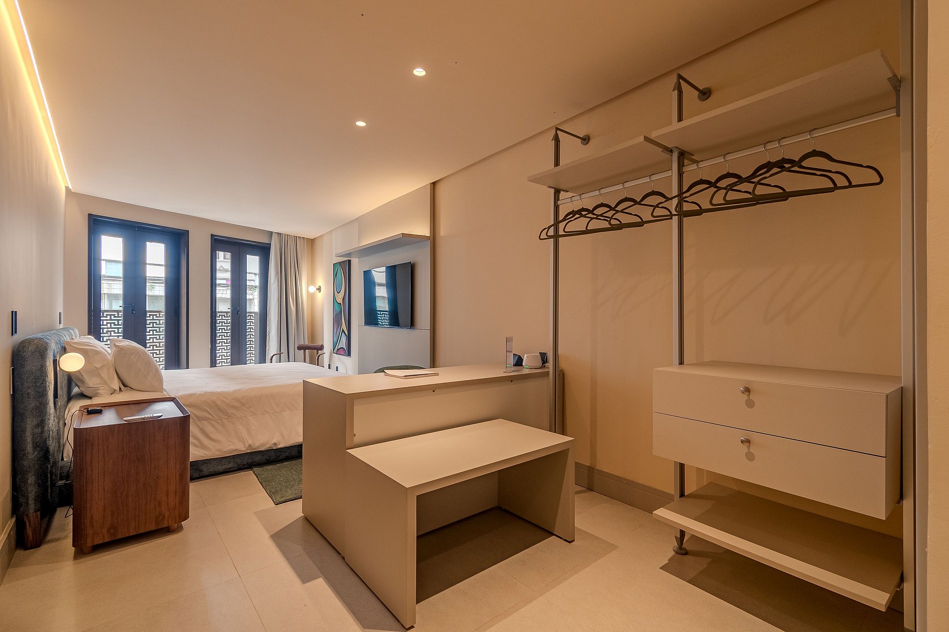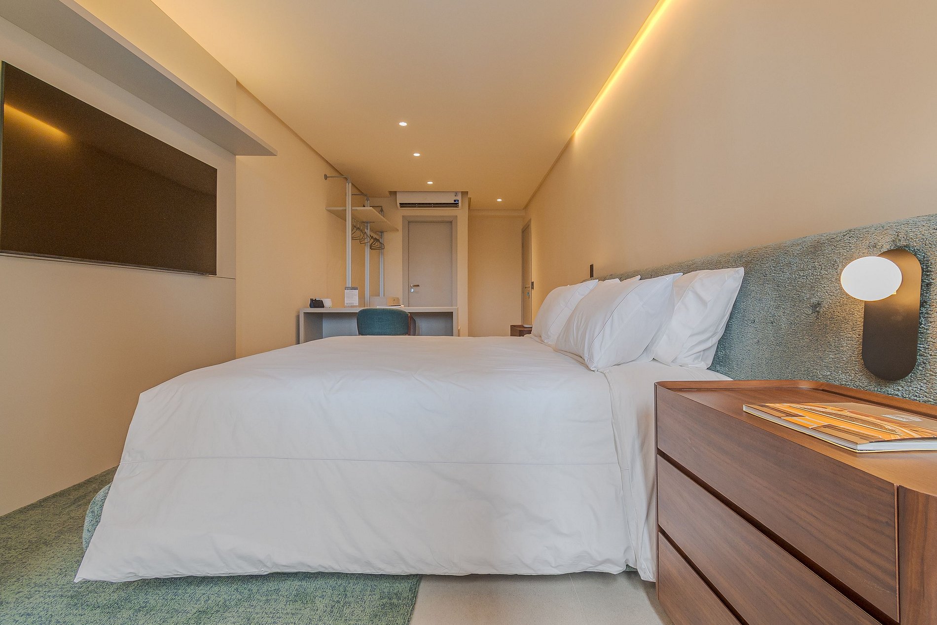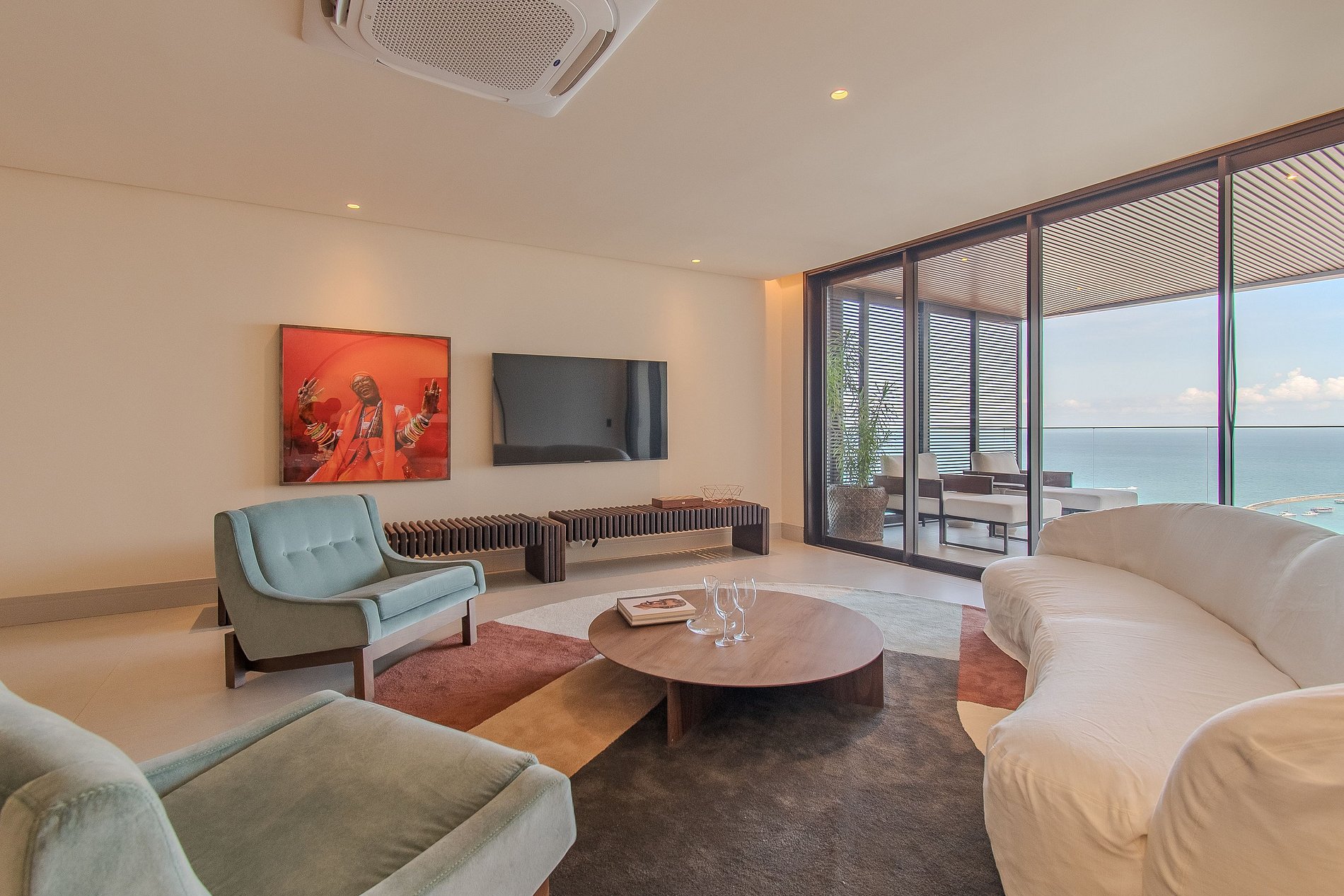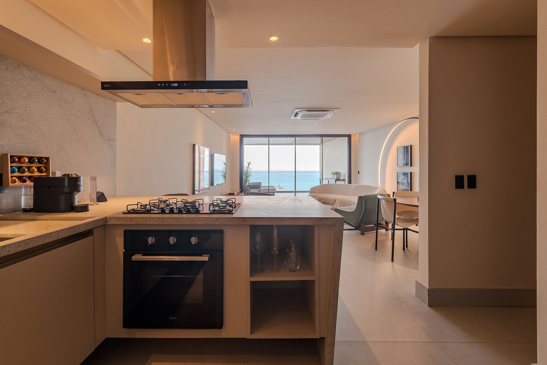 Com 02 quartos, o apartamento pensado pelo arquiteto Marlon Gama é climatizado e conta com enxoval completo, sala de estar e jantar, lavabo e cozinha equipada com utensílios e eletrodomésticos que facilitam o seu dia-a-dia. o ambiente é um verdadeiro tributo à produção artística local. Aqui a iluminação, conforto e a sofisticação do ambiente traz a esse luxuoso apartamento elegância sem excessos . A vista da varanda para a Baía de Todos os Santos, que se estende de maneira acolhedora, completa essa experiência sensorial única.