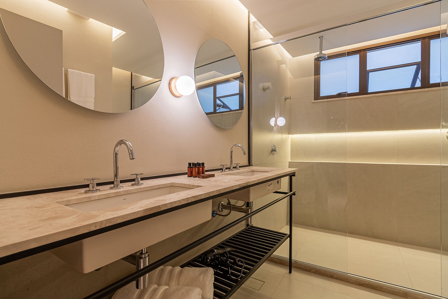 Com 02 quartos, o apartamento pensado pela arquiteta Ivan Rocha é climatizado e conta com enxoval completo, sala de estar e jantar, lavabo e cozinha equipada com utensílios e eletrodomésticos que facilitam o seu dia-a-dia. o ambiente é um verdadeiro tributo à produção artística local. As peças modernas do mobiliário contrastam de forma singular com os toques da madeira e rochas da decoração. A vista da varanda para a Baía de Todos os Santos, que se estende de maneira acolhedora, completa essa experiência sensorial única.