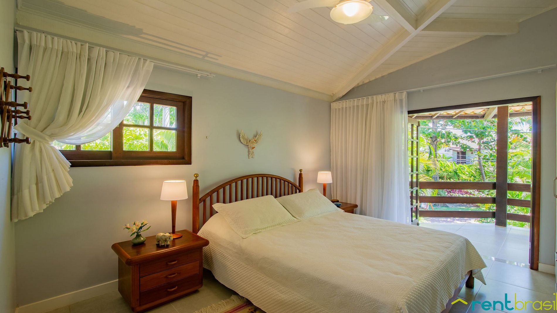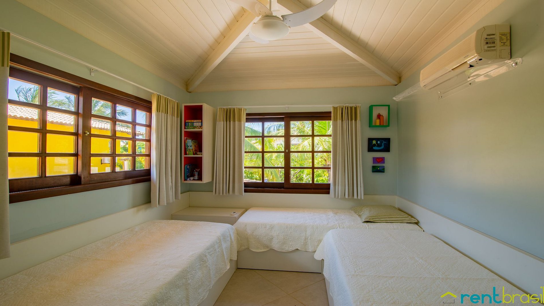 A Casa oferece 4 quartos (3 suítes) climatizados, sendo a primeira suíte no andar térreo com cama de casal, duas espaçosas suítes no andar superior com acesso a uma varanda privativa, e um quarto com três camas de solteiro (e mais um bi-cama). Pode hospedar perfeitamente uma família de até 10 pessoas (incluindo crianças).