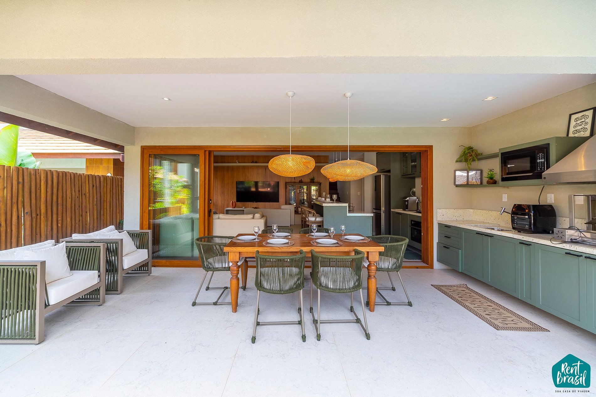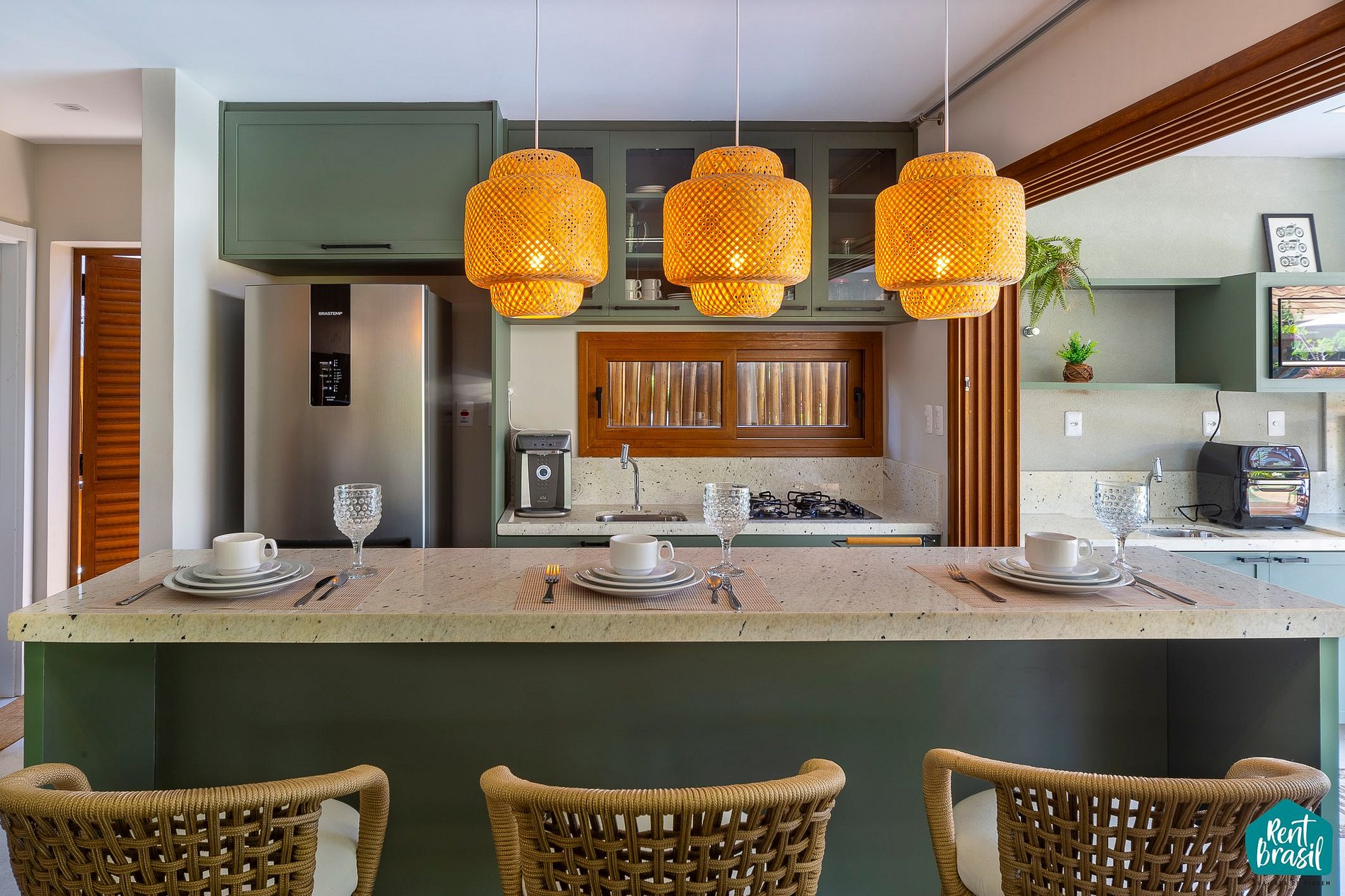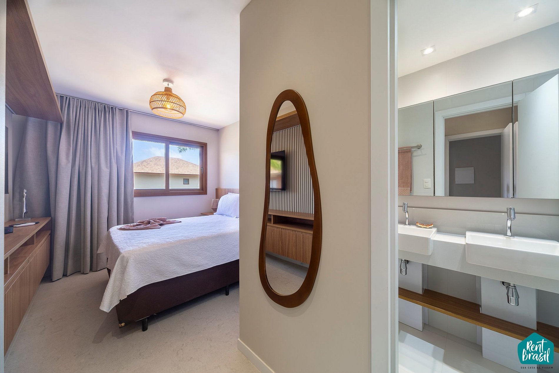 4 suítes climatizadas proporcionando uma melhor noite de sono, uma térrea (com duas camas auxiliares) e três no primeiro andar; Sala de estar com Smart Tv para relaxar depois de um dia na praia e piscina; Cozinha completa com equipamentos de primeira linha: micro-ondas, fogão, geladeira, além de filtro de água e utensílios; Area externa tem o espaço completo para curtir com a família e amigos: area gourmet com churrasqueira para completar o espaço que conta com uma piscina privativa; Area de serviço com varal para sua comodidade.