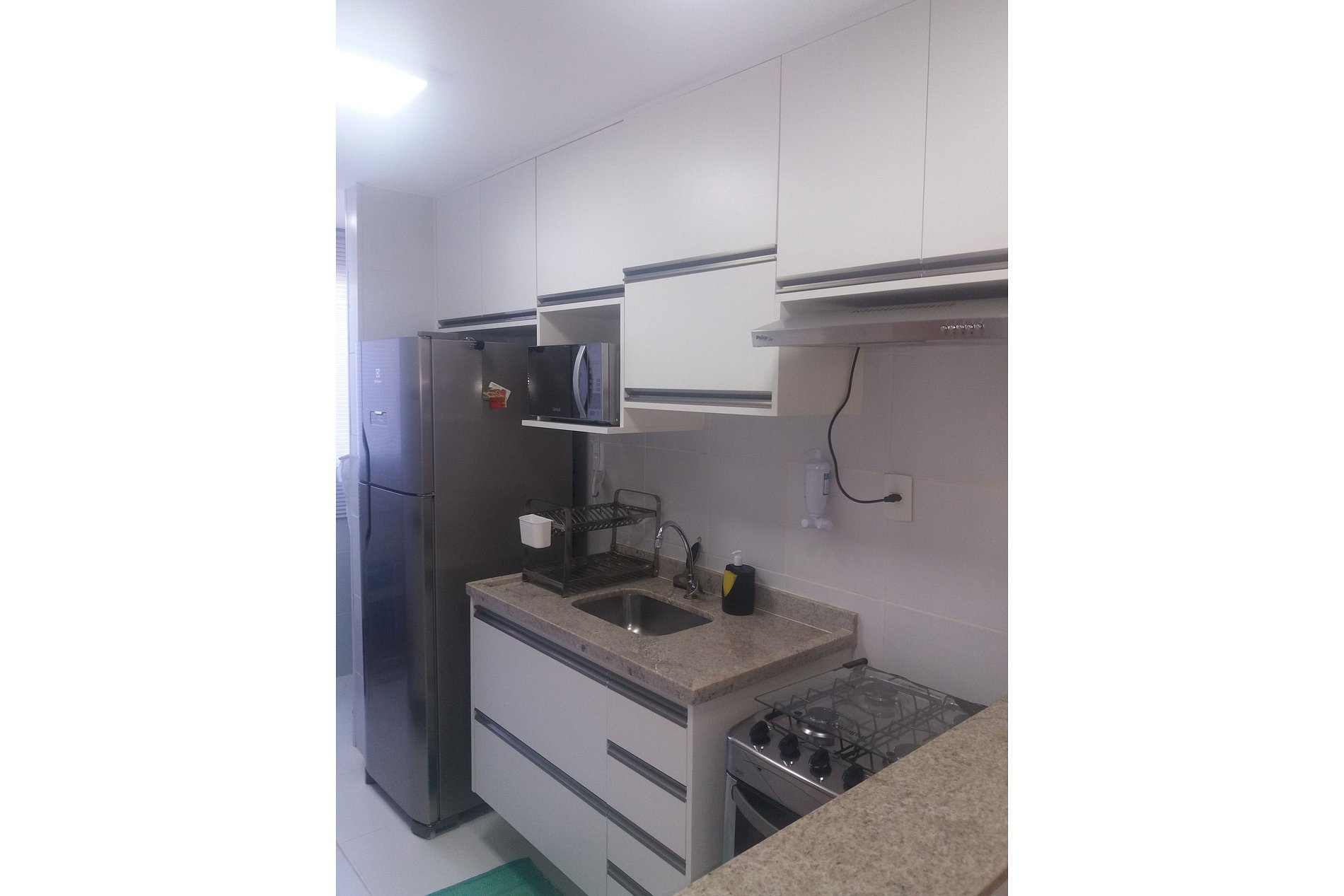 O espaço é muito bem decorado, prático e aconchegante, com uma ampla varanda gourmet muito atraente. A cozinha americana está equipada com todos os utensílios, e tem uma pequena área de serviço. O quarto é climatizado e possui cama de casal queen size, a sala de estar também climatizada conta com um sofa cama de casal, black out e Smart TV de 47". O apartamento acomoda confortavelmente 4 pessoas e é entregue com roupas de cama e banho.