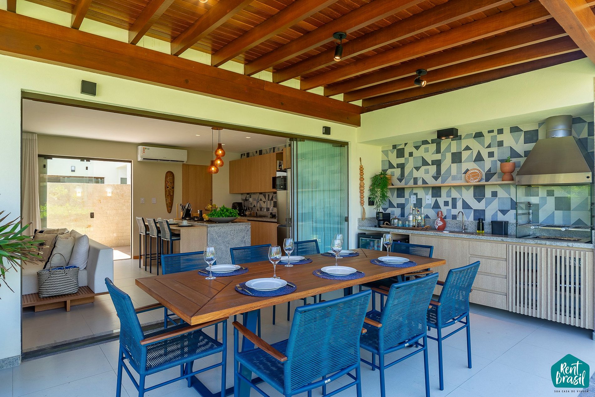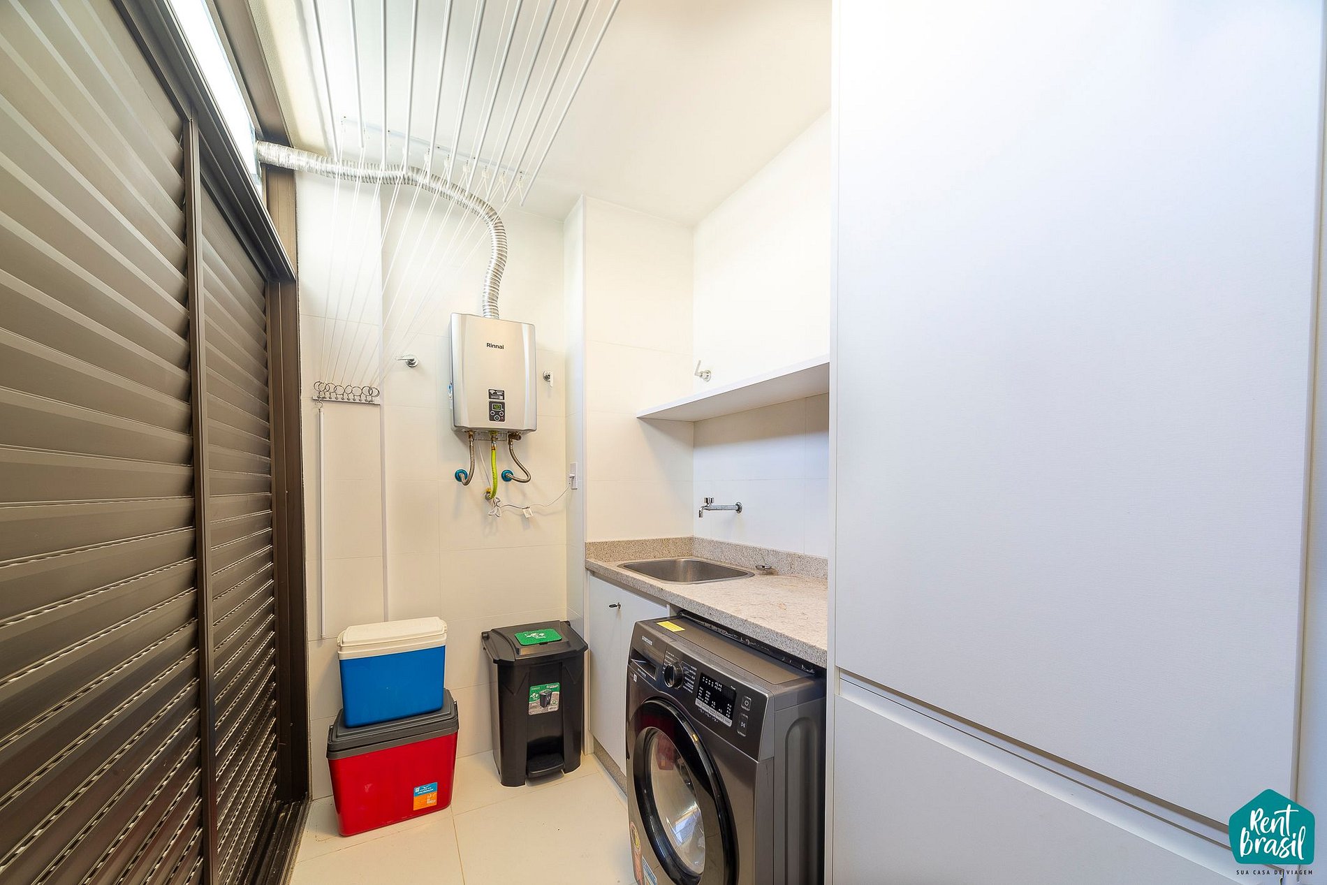 Na área externa é garantido um ambiente arejado e confortável com mesa de jantar, cervejeira e churrasqueira para reunir os amigos e a família em seu aluguel por temporada. Existe, adicionalmente, uma área de serviço para sua comodidade. Acomodamos confortavelmente até 6 pessoas.