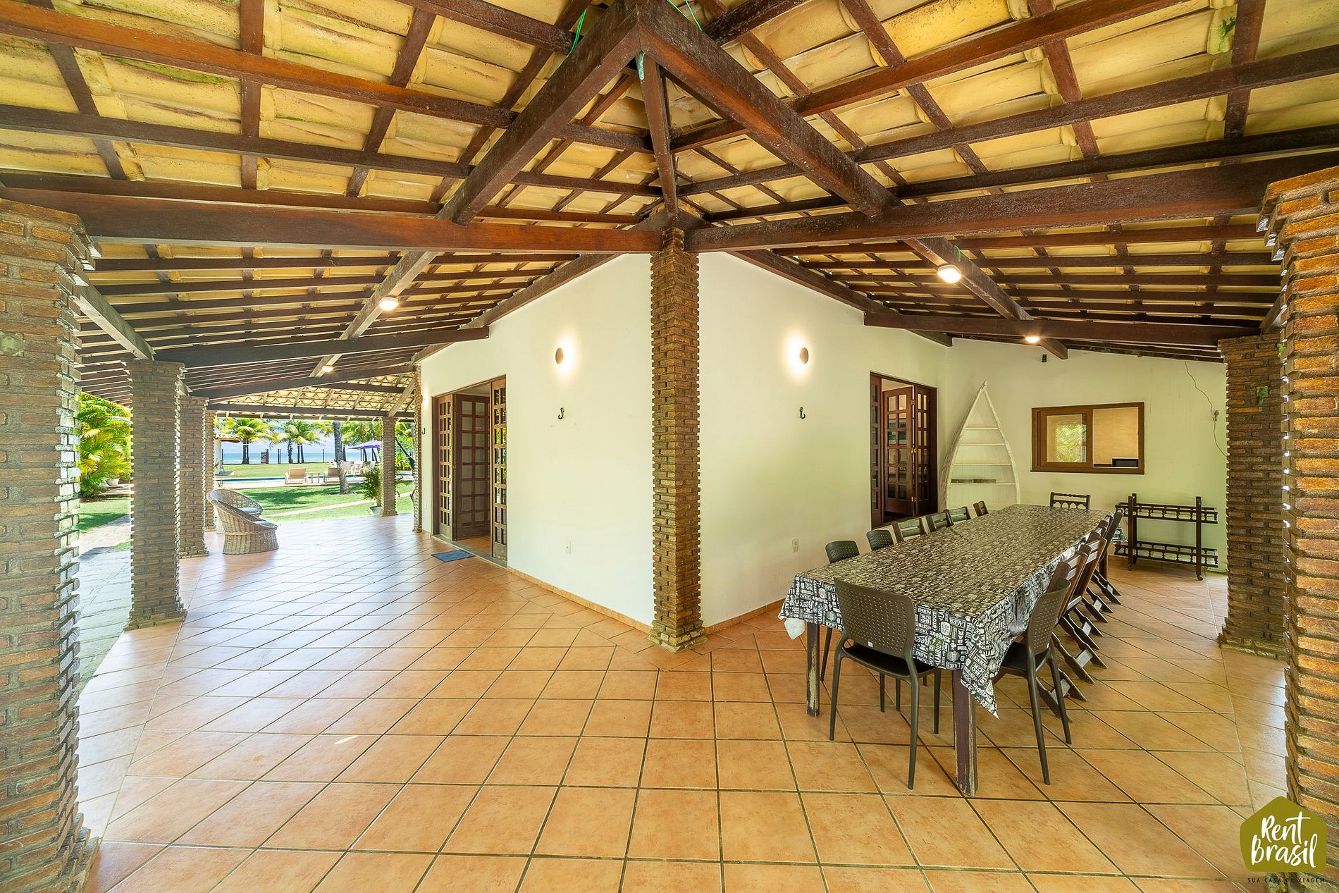 Com acesso direto à praia através de um portão no jardim, a casa oferece 5 suítes climatizadas e 2 quartos adicionais, distribuídos entre a casa principal e o chalé. Perfeita para acomodar grandes grupos, conta com uma sala de estar equipada com televisão para momentos de lazer, além de um ambiente integrado com a sala de jantar e um mini bar para preparar drinks. A cozinha totalmente reformada é equipada com uma grande ilha para preparação das refeições, armários, micro-ondas, freezer, fogão, geladeira, cafeteira, filtro de água e utensílios completos.
