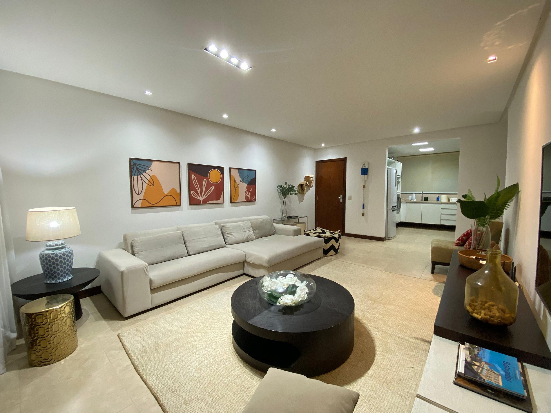 Apartamento de alto padrão com 118 m2 com 3 suítes duplas equipadas com ar condicionado, sala de estar e de jantar, lavabo e varanda. TV a cabo + rádio CD. Cozinha 100% equipada com lavadoura de roupa, fogão, geladeira e microondas. Roupas de cama, mesa e banho. O apartamento é decorado com muito estilo e bom gosto, todo equipado e comporta confortavelmente até 6 pessoas.