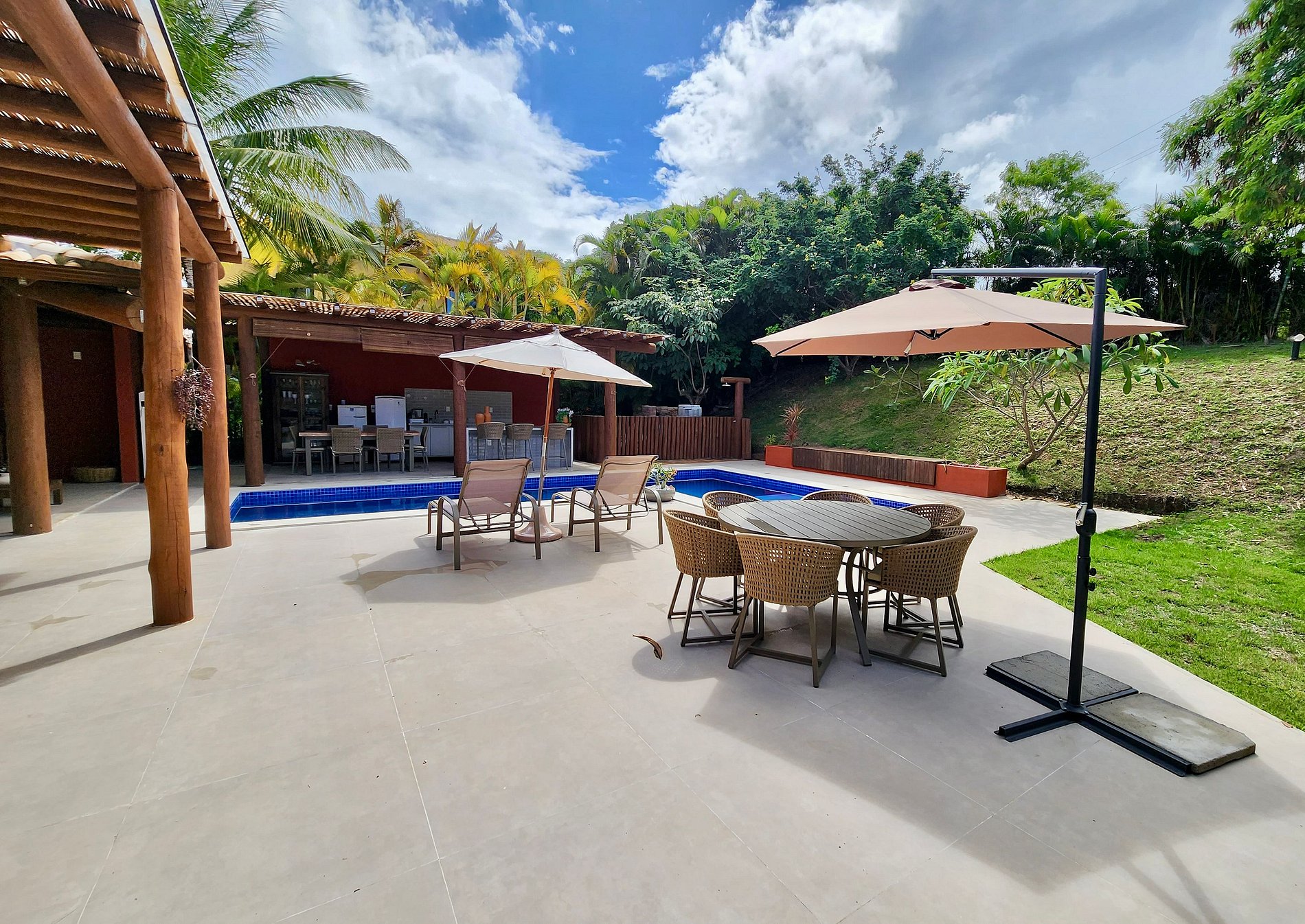 Beautiful house of 2 floors and with soft decoration. This property has 4 air conditioned suites + dependence of maid, living room and dining room integrated with LCD TV + SOUND. Full kitchen with stove, microwave, refrigerator, FREEZER, washing machine. Gourmet space with barbecue and private pool, balcony with hammock and a lovely garden.
