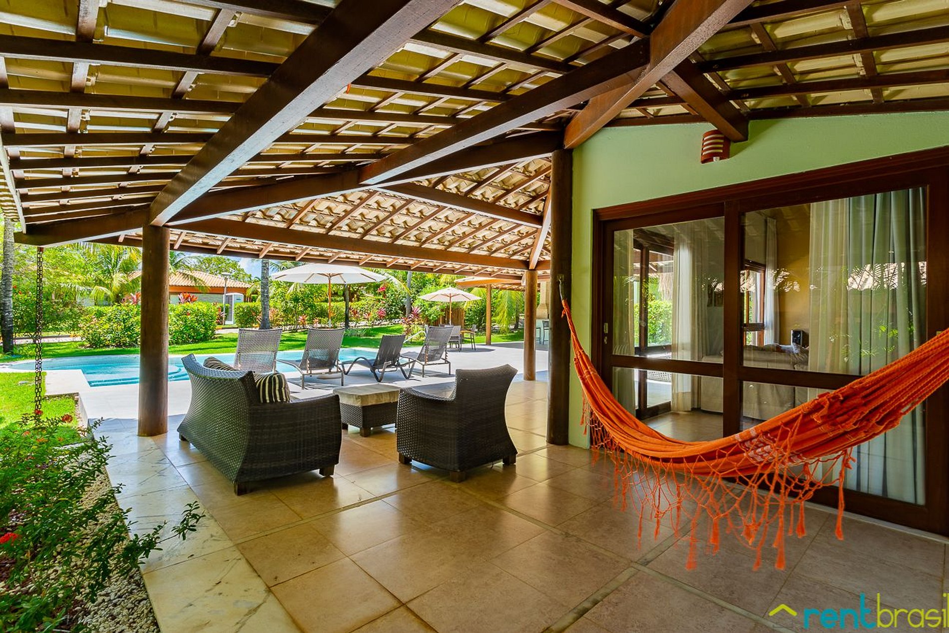 The house is located in the Vale das Orquídeas Condominium, within the Imbassaí Reserve Tourist Complex, with 24hrs security, private access to the Beach, Fitness center, Sports courts, Beach service, Club with pool and bar service. The house is only 2km away from the village of Imbassaí, it is possible to access it inside the Condominium, without the need to use the highway.