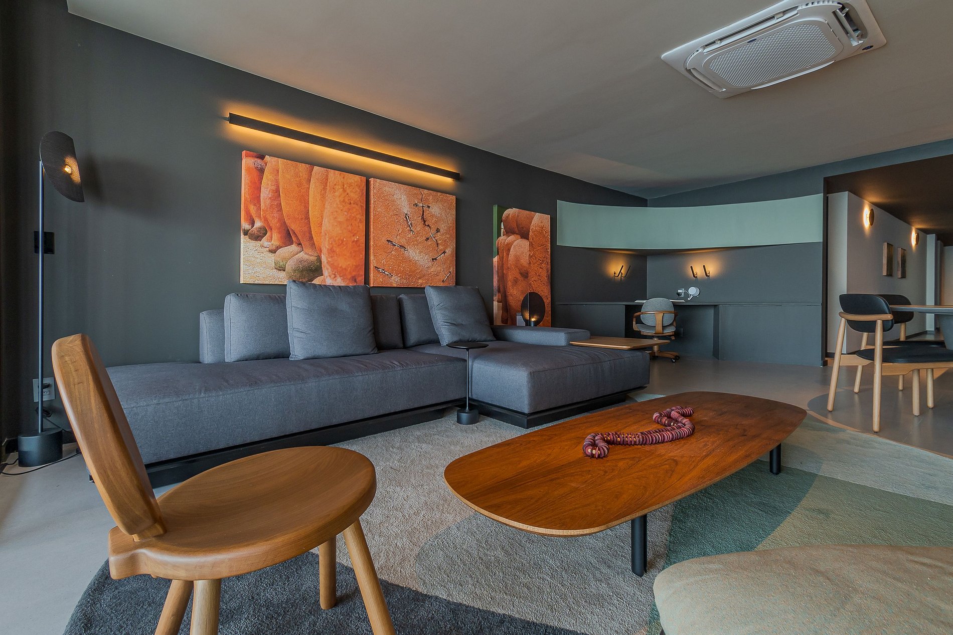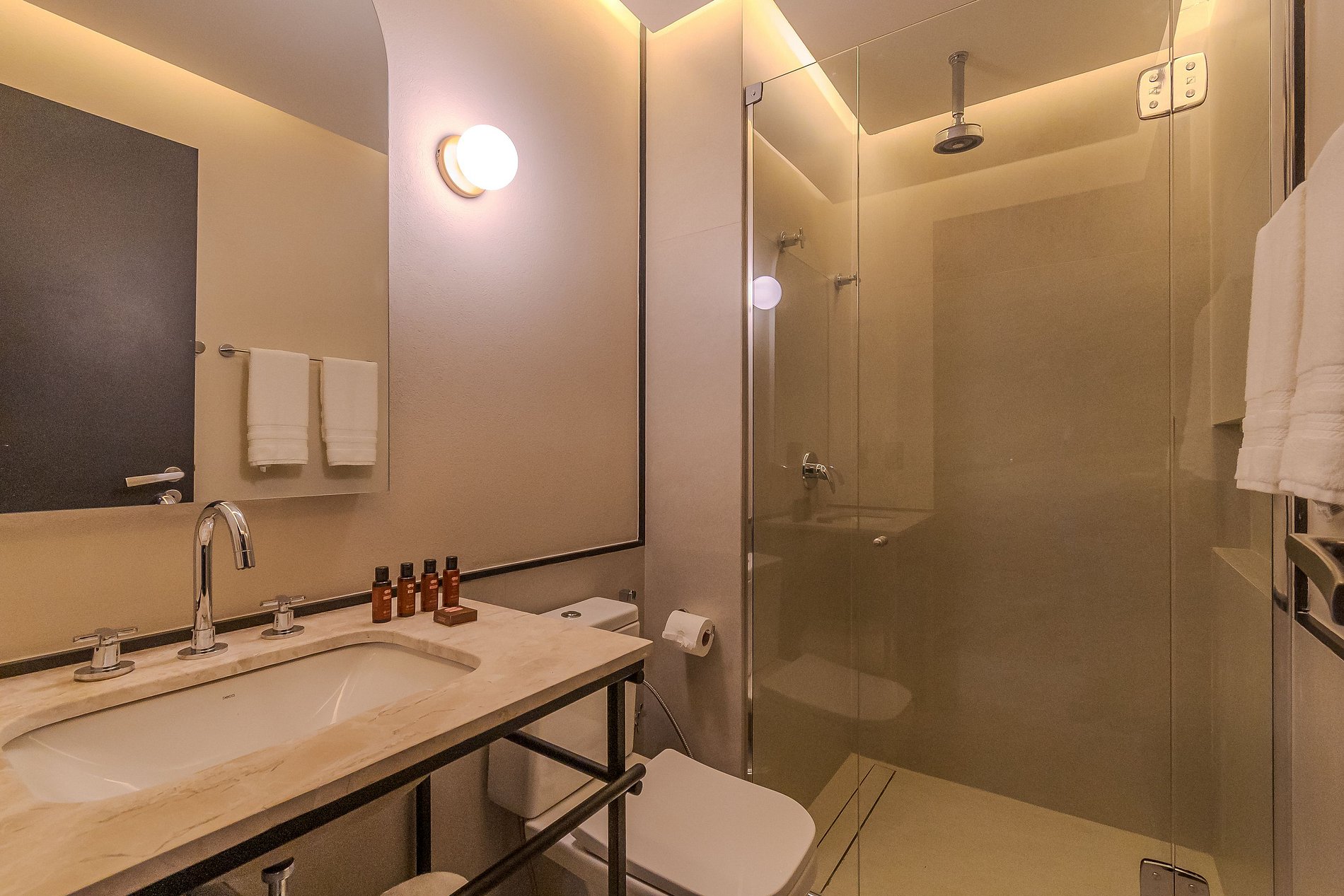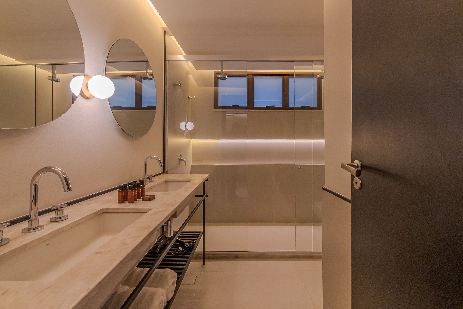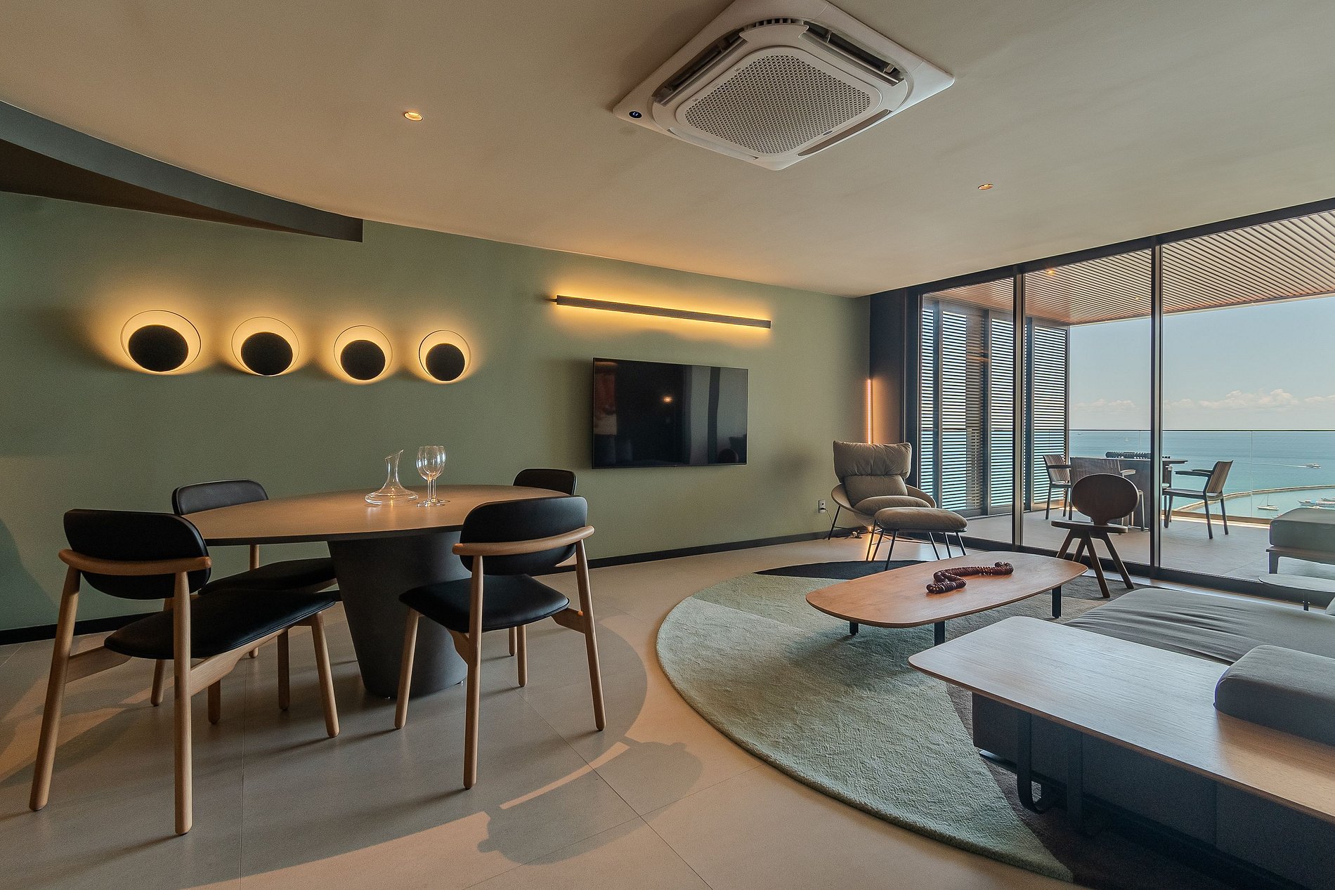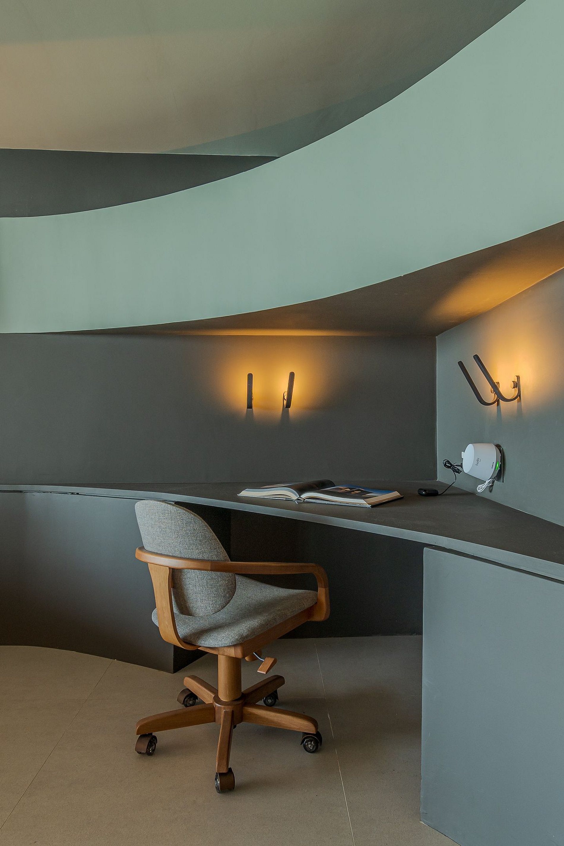 Com 02 quartos, o apartamento pensado pela arquiteta Viviane Vieira é climatizado e conta com enxoval completo, sala de estar e jantar, lavabo e cozinha equipada com utensílios e eletrodomésticos que facilitam o seu dia-a-dia. o ambiente é um verdadeiro tributo à produção artística local. O apartamento tem tons verdes que acolhem fotografias em quadros que retratam o artesanato em argila e a modernidade de um ambiente automatizado desenvolvido para ser totalmente funcional. A vista da varanda para a Baía de Todos os Santos, que se estende de maneira acolhedora, completa essa experiência sensorial única.