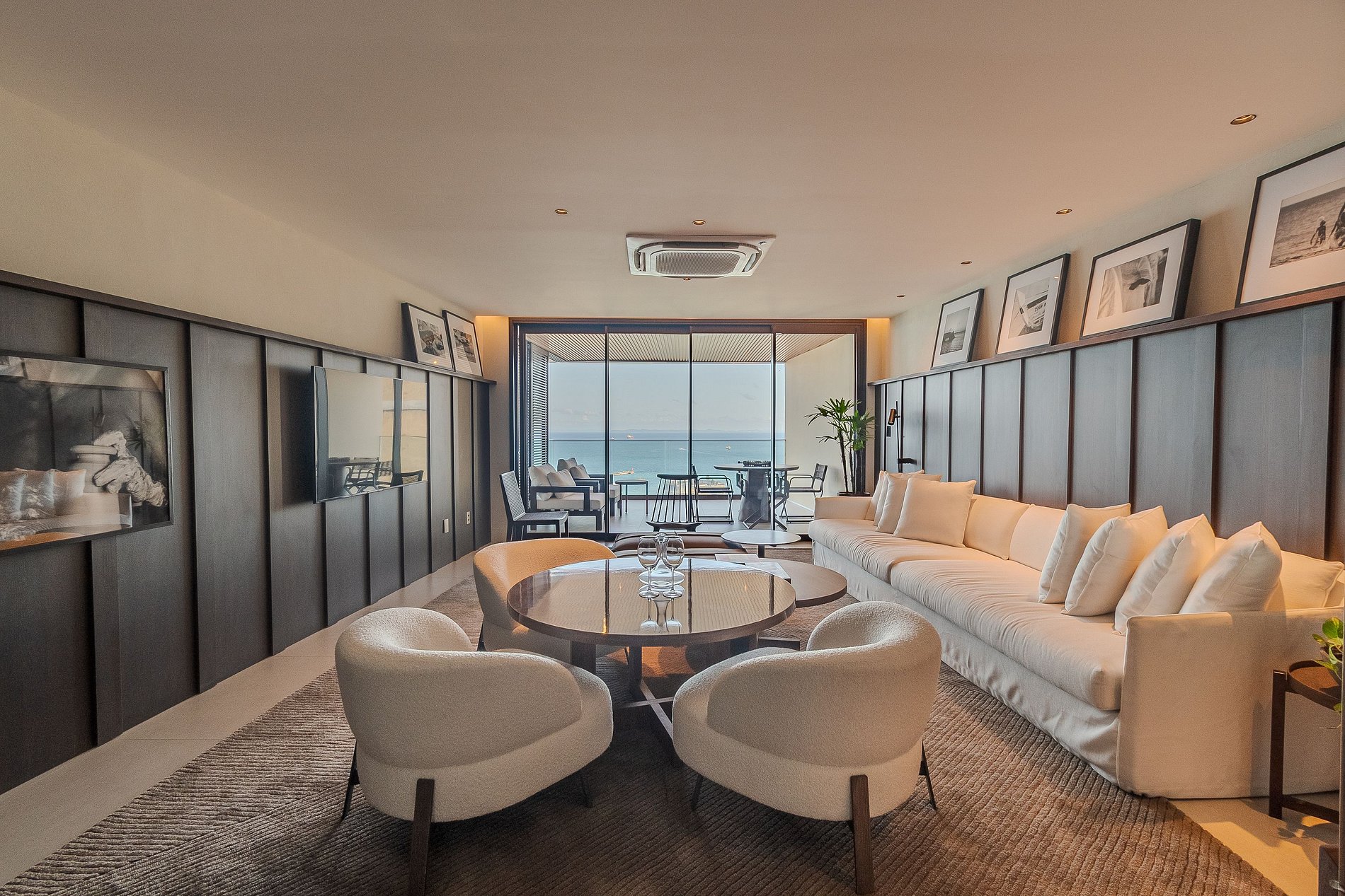 Com 02 quartos, o apartamento pensado pela arquiteta Daniela Lopes é climatizado e conta com enxoval completo, sala de estar e jantar, lavabo e cozinha equipada com utensílios e eletrodomésticos que facilitam o seu dia-a-dia. o ambiente é um verdadeiro tributo à produção artística local. Os toques em preto e branco se misturam com fotografias no mesmo filtro, na qual retratam a estética clássica com requinte e elegância. A vista da varanda para a Baía de Todos os Santos, que se estende de maneira acolhedora, completa essa experiência sensorial única.