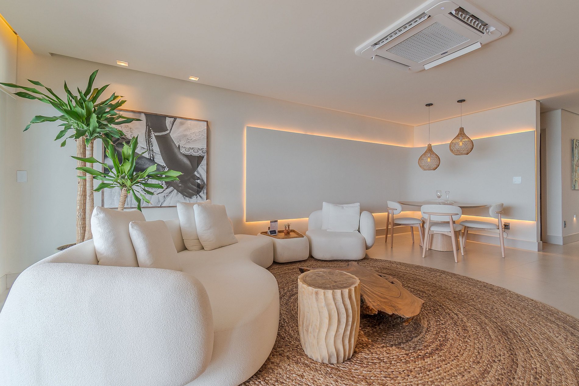 Neste apartamento de 146 m2, com uma proposta de design funcional e atemporal, você encontrará o equilíbrio perfeito entre conforto e brasilidade!