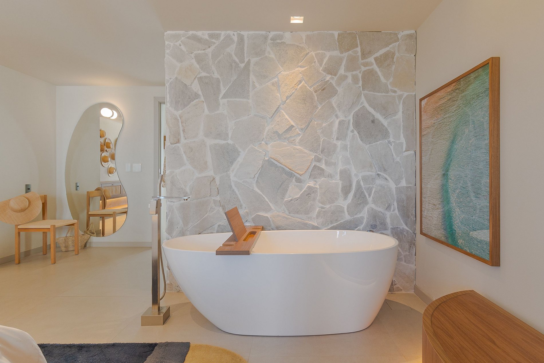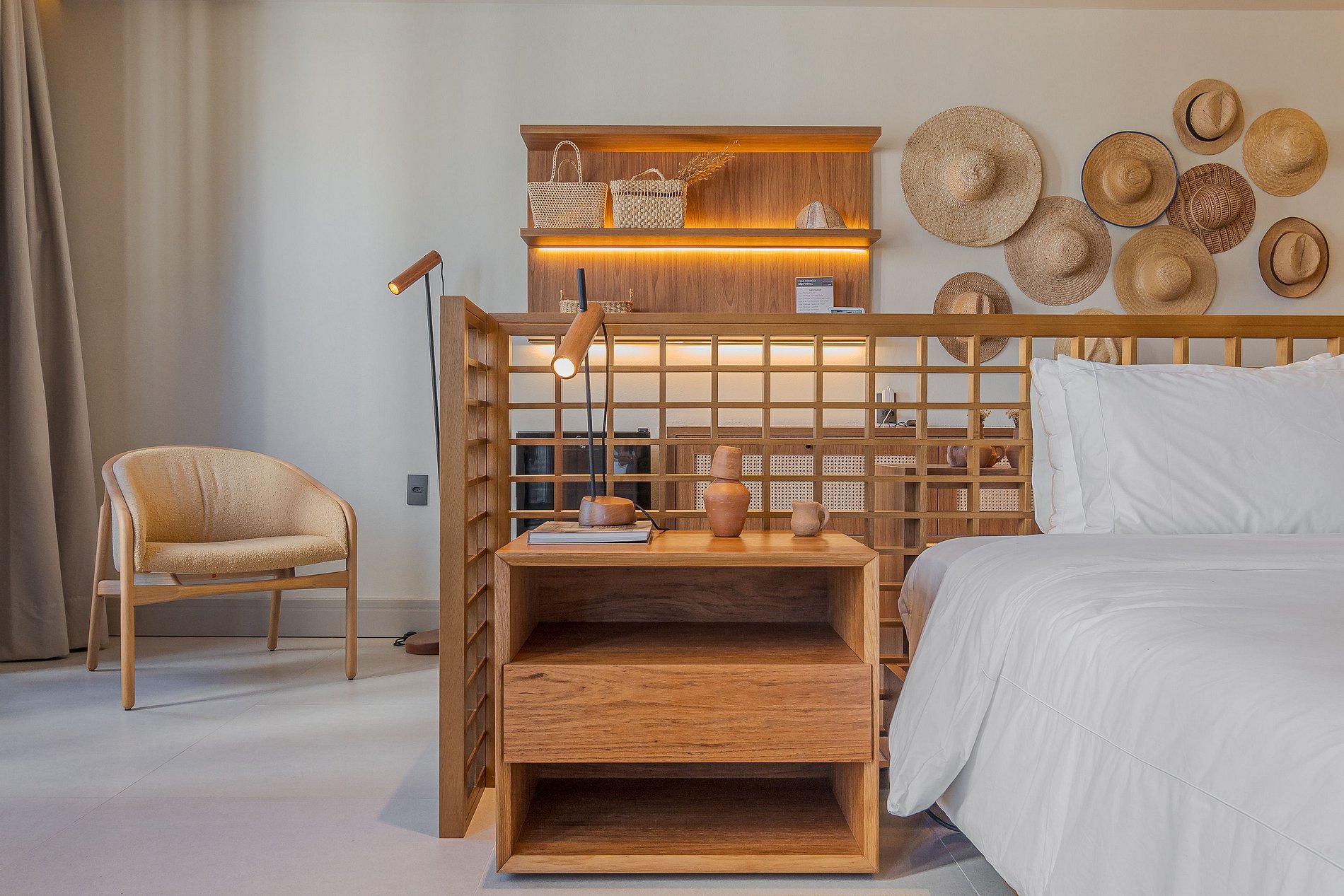 Com 01 suíte dupla, o apartamento pensado pela arquiteta Natália Velame é climatizado e conta com enxoval completo, sala de estar e jantar, lavabo e cozinha equipada com utensílios e eletrodomésticos que facilitam o seu dia-a-dia. O ambiente é um verdadeiro tributo à produção artística local. O requintado apartamento está repleto de sofisticação e tecnologia, os tons de dourado e rosé te leva a imersão total ao conforto e experiência 5 estrelas, isso porquê além da maravilhosa vista da Baía de Todos os Santos, a suíte conta com banheira, cervejeira, espaço office e cama king size!