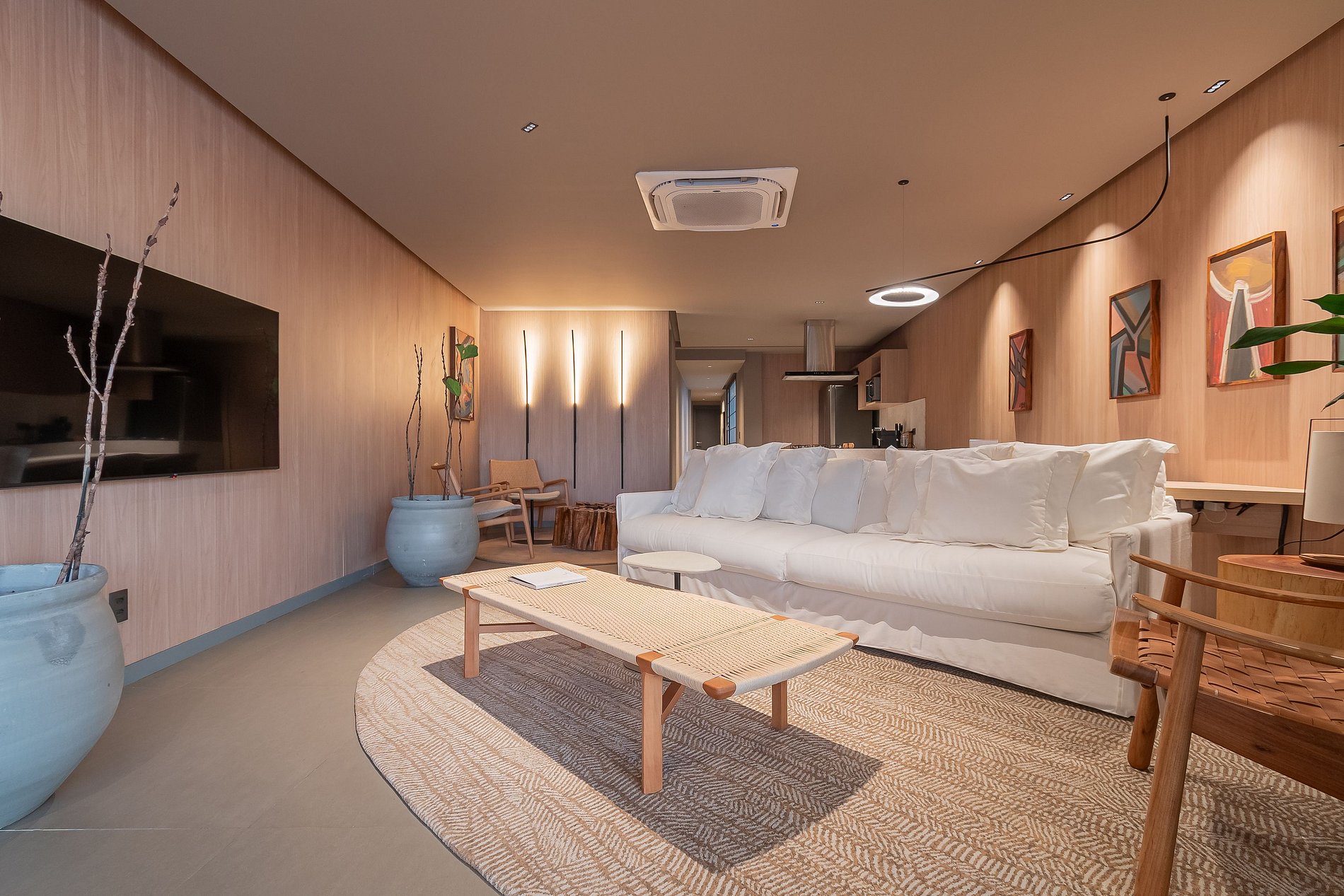 Neste apartamento de 146 m2, com uma proposta de design funcional e atemporal, você encontrará o equilíbrio perfeito entre conforto e brasilidade!