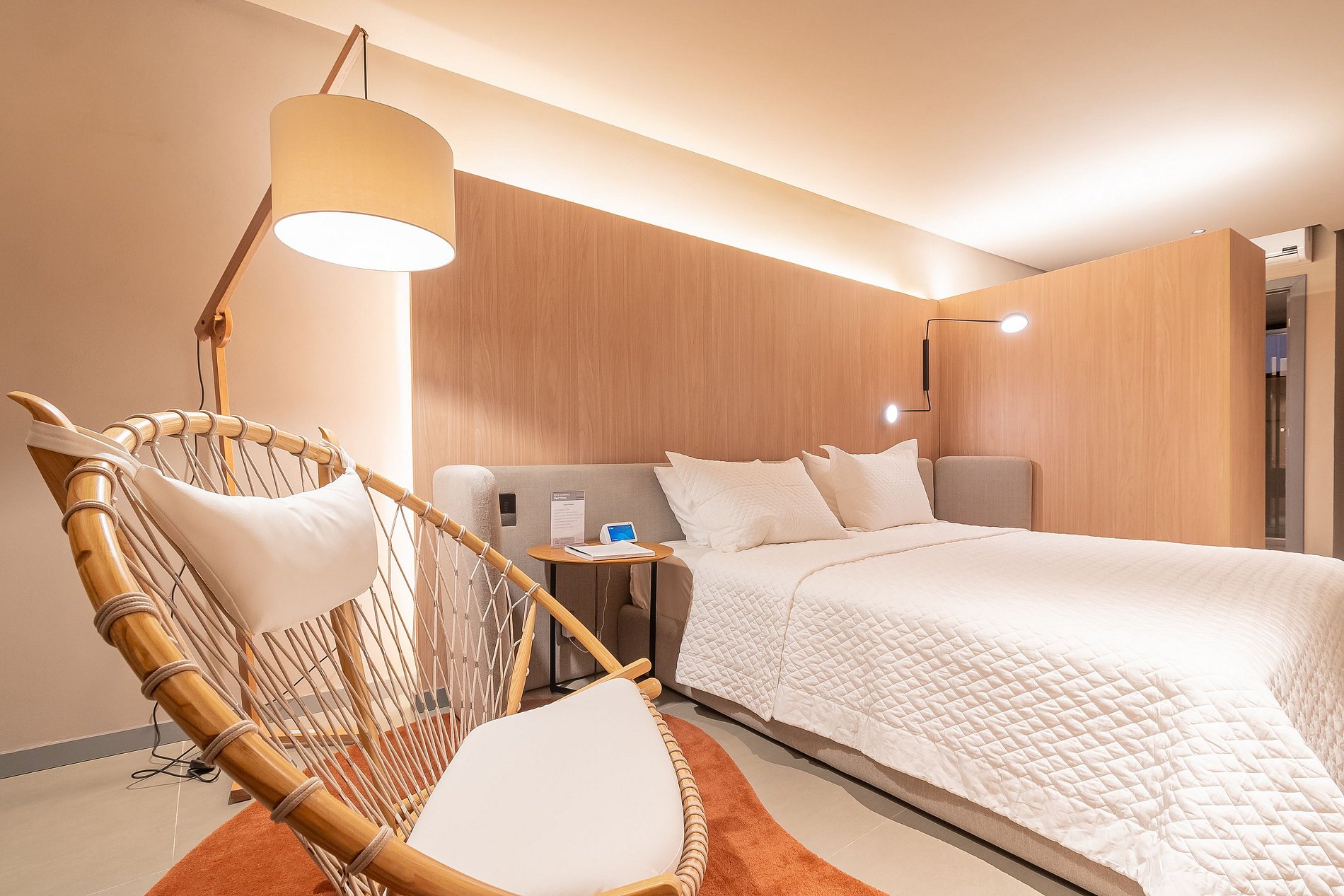 Com 02 quartos, o apartamento pensado pelo arquiteto Marcus Barbosa é climatizado e conta com enxoval completo, sala de estar e jantar, lavabo e cozinha equipada com utensílios e eletrodomésticos que facilitam o seu dia-a-dia. o ambiente é um verdadeiro tributo à produção artística local. Pensado para levar a visita deste apartamento para sua própria casa, com seu mobiliário aconchegante e acolhedor, porém moderno e sofisticado. A vista da varanda para a Baía de Todos os Santos, que se estende de maneira acolhedora, completa essa experiência sensorial única.