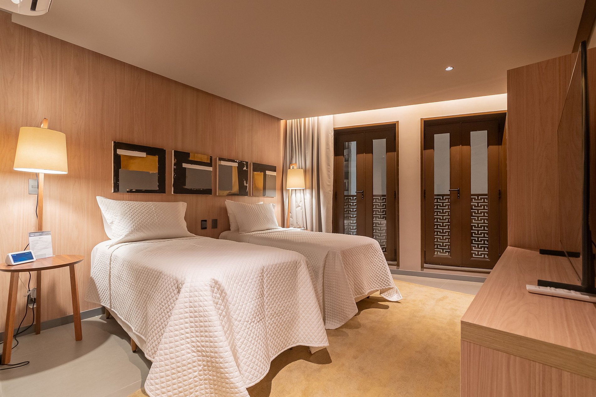 Informamos que para unidade de 02 suítes oferecemos valor igual ao de uma suíte para ocupação de até dois hóspedes utilizando apenas uma das suítes. Em caso de uso das duas suítes será cobrado o valor completo do apartamento, mesmo com 02 hóspedes.