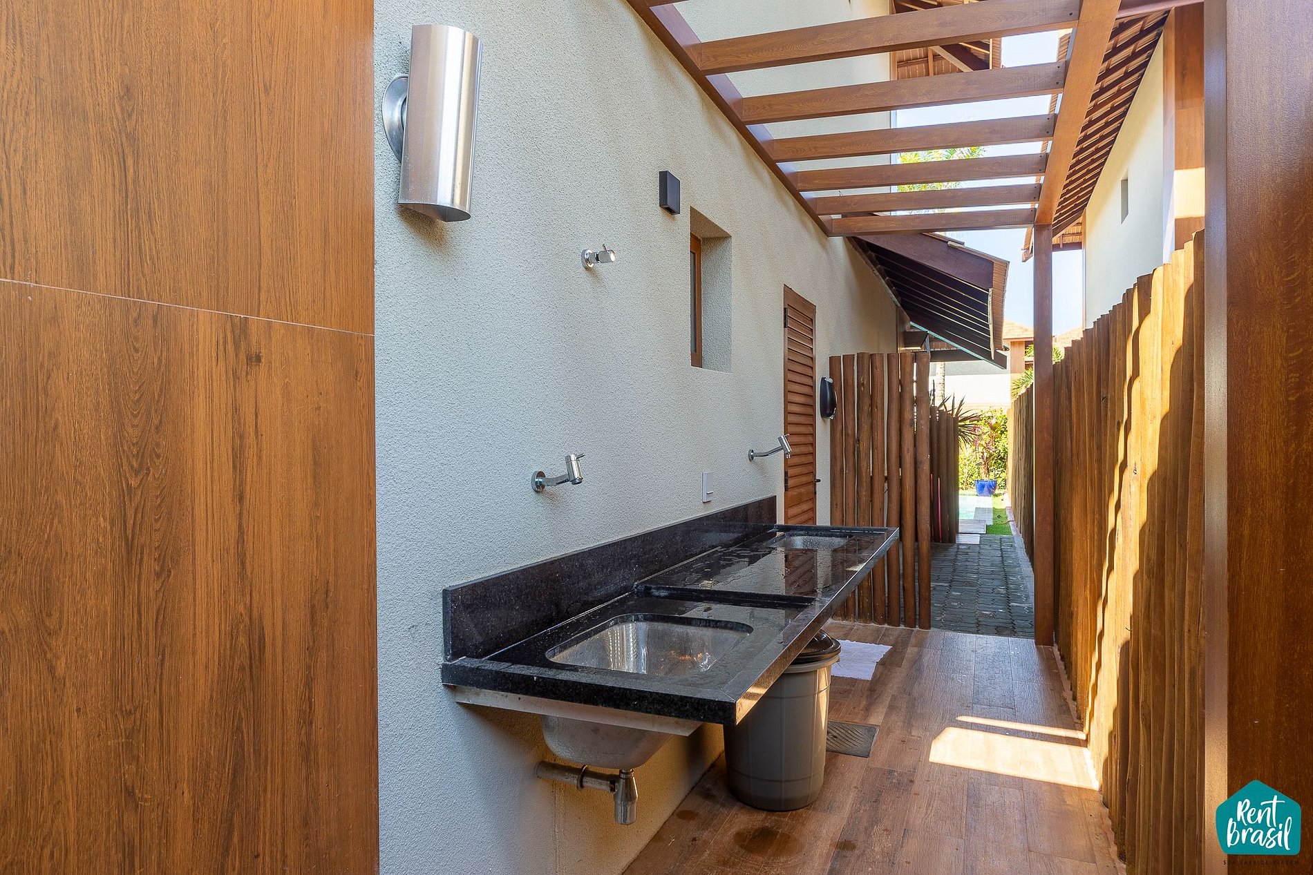 4 suites con aire acondicionado para un mejor descanso, una en la planta baja y tres en el primer piso. Las suites son ideales para grupos de amigos o familias, con una litera y una cama nido en una de ellas, con capacidad para hasta 4 personas. Sala de estar con Smart TV para relajarse después de un día en la playa y la piscina. Cocina totalmente equipada con electrodomésticos de alta gama: microondas, estufa, refrigerador, freidora de aire, filtro de agua y utensilios. El área exterior cuenta con un espacio completo para disfrutar con familiares y amigos: mesa, enfriador de cerveza, barbacoa y piscina privada. Área de servicio para su comodidad.