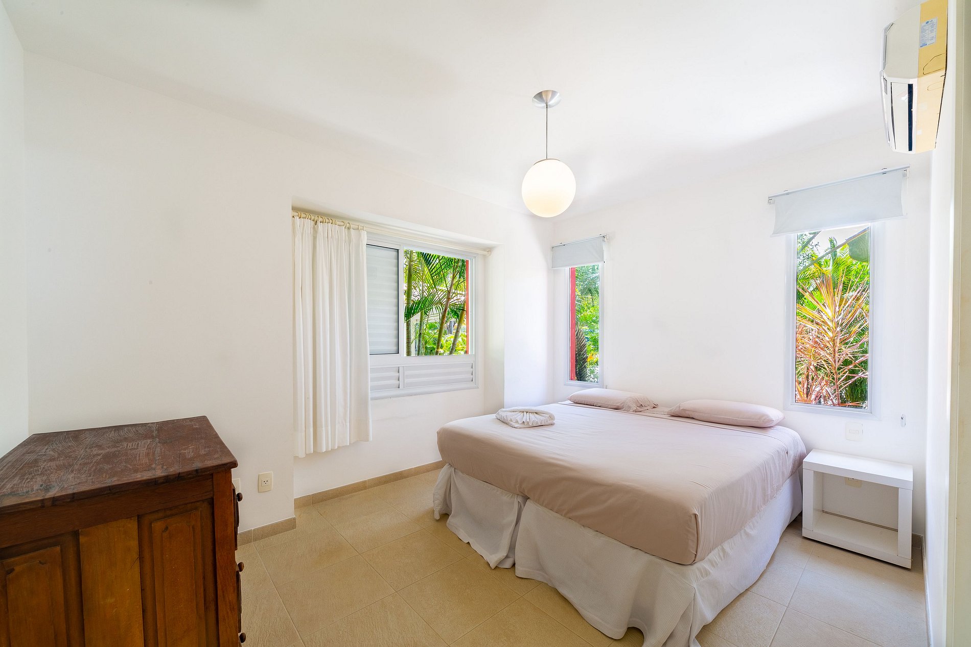 Les ofrecemos un ambiente cómodo y acogedor, perfecto para disfrutar con amigos y familiares. La propiedad cuenta con 4 suites con aire acondicionado (una con Smart TV). La sala de estar es luminosa y cuenta con Smart TV, al igual que el comedor, con amplio espacio para recibir a sus invitados, todo decorado con estilo y buen gusto. La cocina está totalmente equipada con estufa, refrigerador, microondas, filtro de agua, utensilios y electrodomésticos. También disponemos de un área de servicio con lavadora y una habitación de servicio sin aire acondicionado con una cama individual y baño (disponibilidad a consultar).