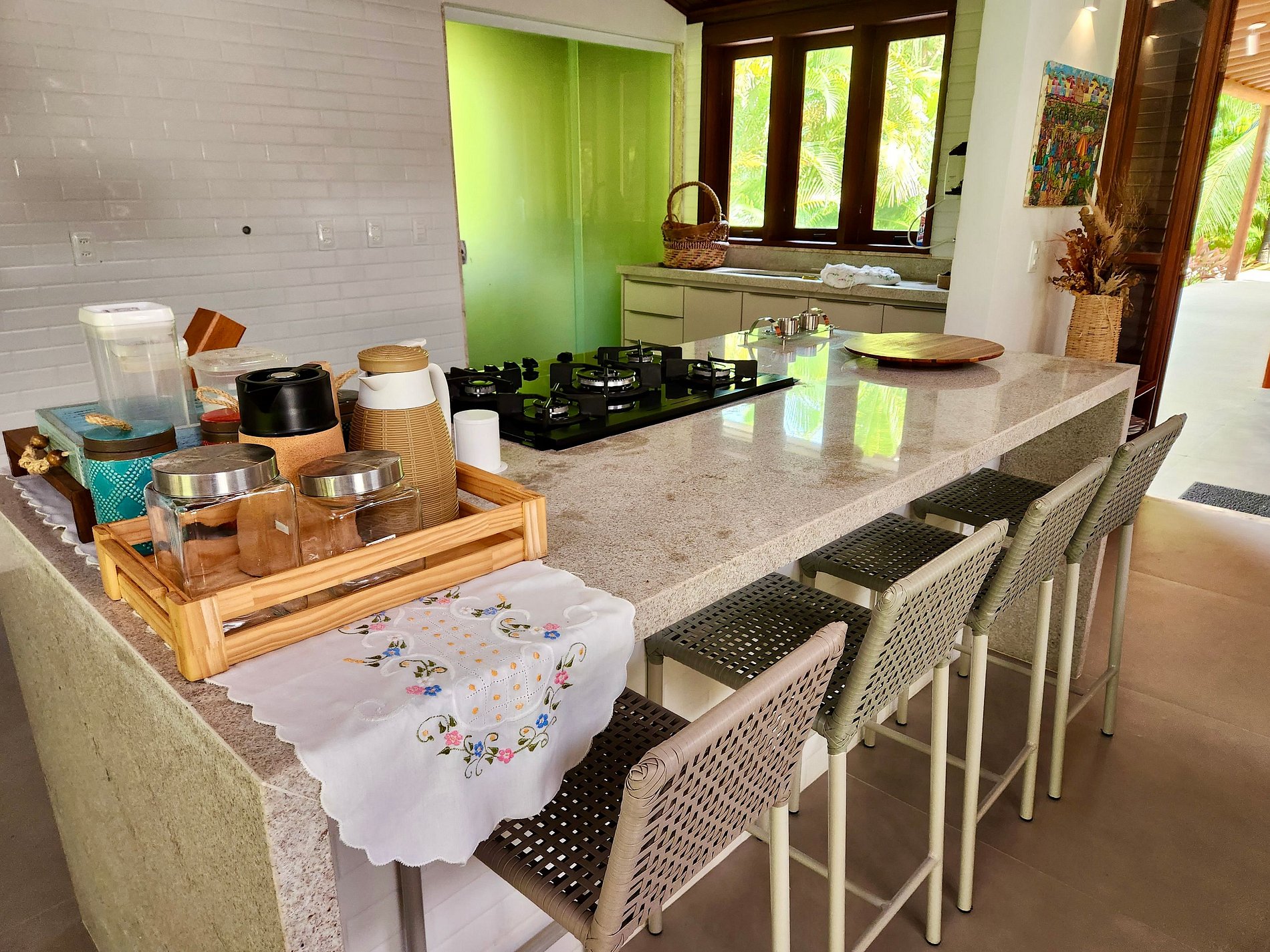 A nossa casa está localizada no Condomínio Vale das Orquídeas, dentro do Complexo Turístico Reserva Imbassaí. O condomínio oferece segurança 24 horas, acesso privativo à praia, um centro de fitness, quadras poliesportivas, um clube com piscina e áreas de lazer.