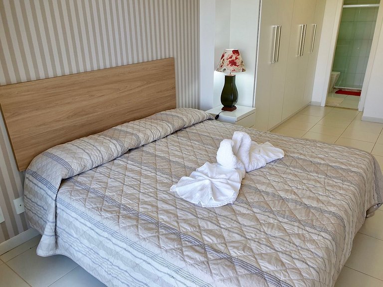 Apartamento de 1/4 localizado no 1º andar com varanda. Possui 1 suíte casal com cama king size e Smart TV de 32".