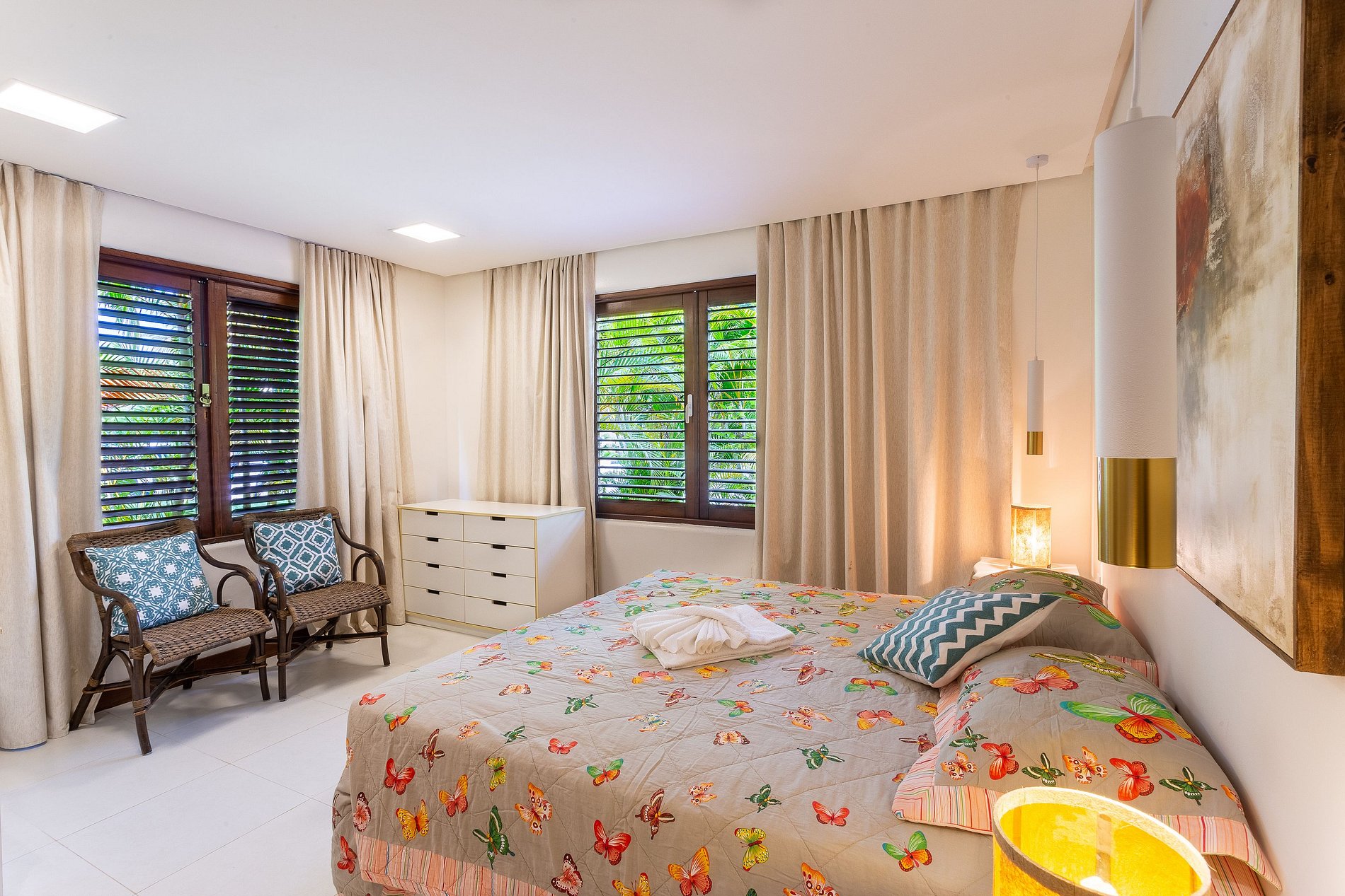 Bem-vindo ao nosso apartamento de alto padrão, térreo D01 101 Bromélias! Oferecemos um ambiente confortável, aconchegante, perfeito para desfrutar com amigos e familiares. O imóvel dispõe de 3 suítes climatizadas, sala de estar e jantar ampla e confortável com Smart TV de 42”, cervejeira, máquina de café Nespresso e adega para vinhos; Varanda arejada com sofá, rede, mesas e cadeiras para aproveitar a natureza do jardim. A cozinha está completamente equipada com fogão, geladeira, micro-ondas, filtro de água, além de utensílios e eletrodomésticos. Há também uma área de serviço com máquina de lavar roupa e uma dependência de empregada com ar condicionado e uma cama de solteiro. Acomodamos confortavelmente até 09 pessoas.