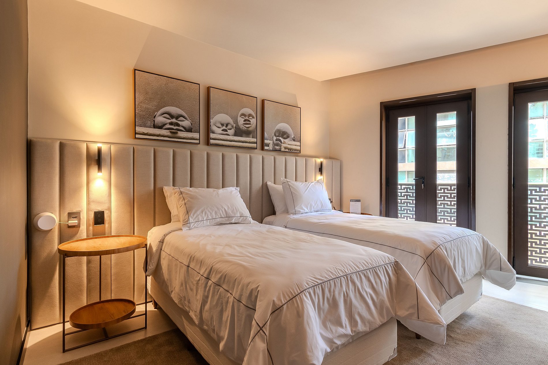 Com 02 quartos, o apartamento pensado pela arquiteta Viviane Vieira é climatizado e conta com enxoval completo, sala de estar e jantar, lavabo e cozinha equipada com utensílios e eletrodomésticos que facilitam o seu dia-a-dia. o ambiente é um verdadeiro tributo à produção artística local. O apartamento tem tons verdes que acolhem fotografias em quadros que retratam o artesanato em argila e a modernidade de um ambiente automatizado desenvolvido para ser totalmente funcional. A vista da varanda para a Baía de Todos os Santos, que se estende de maneira acolhedora, completa essa experiência sensorial única.