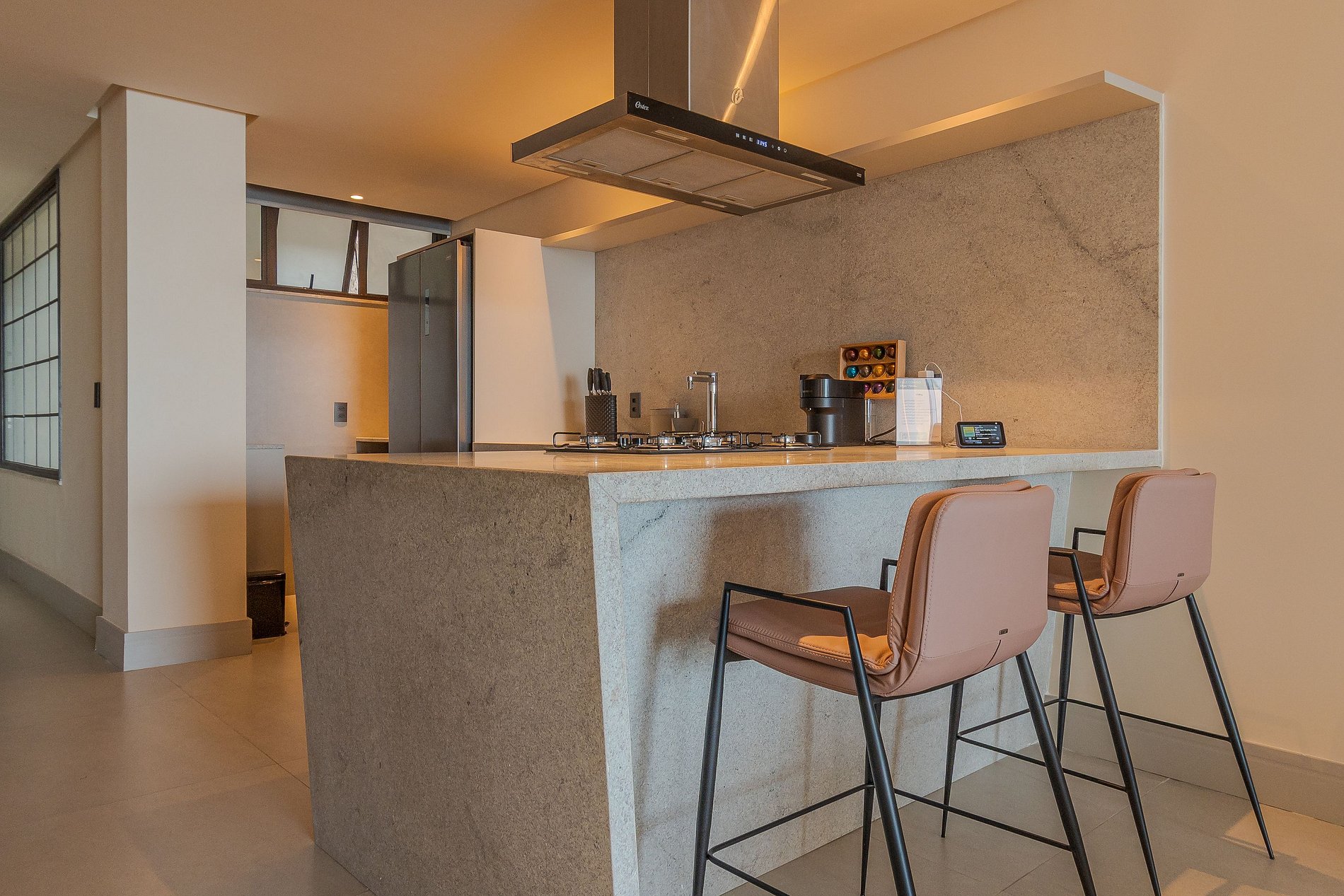 Com 02 quartos, o apartamento pensado pelo arquiteto Marlon Gama é climatizado e conta com enxoval completo, sala de estar e jantar, lavabo e cozinha equipada com utensílios e eletrodomésticos que facilitam o seu dia-a-dia. o ambiente é um verdadeiro tributo à produção artística local. Aqui a iluminação, conforto e a sofisticação do ambiente traz a esse luxuoso apartamento elegância sem excessos . A vista da varanda para a Baía de Todos os Santos, que se estende de maneira acolhedora, completa essa experiência sensorial única.