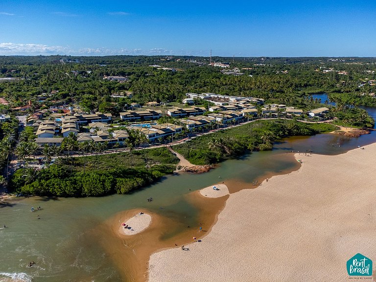 A localização é privilegiada, integrado à encantadora Vila de Imbassai, situada a 65 km do Aeroporto Internacional de Salvador, e a apenas 12 km da Vila de Praia do Forte. Na Vila, você encontrará supermercados, farmácias, restaurantes, lojas de souvenirs, além de um espetáculo de rara beleza: o encontro do rio com o mar.