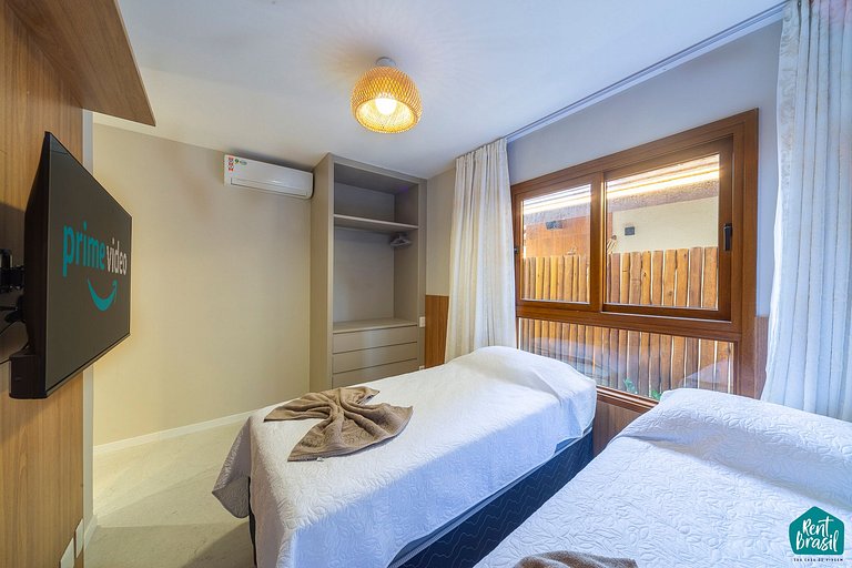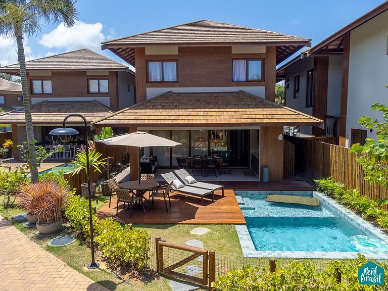 4 suítes climatizadas proporcionando uma melhor noite de sono, uma térrea (com duas camas auxiliares) e três no primeiro andar; Sala de estar com Smart Tv para relaxar depois de um dia na praia e piscina; Cozinha completa com equipamentos de primeira linha: micro-ondas, fogão, geladeira, além de filtro de água e utensílios; Area externa tem o espaço completo para curtir com a família e amigos: area gourmet com churrasqueira para completar o espaço que conta com uma piscina privativa; Area de serviço com varal para sua comodidade.