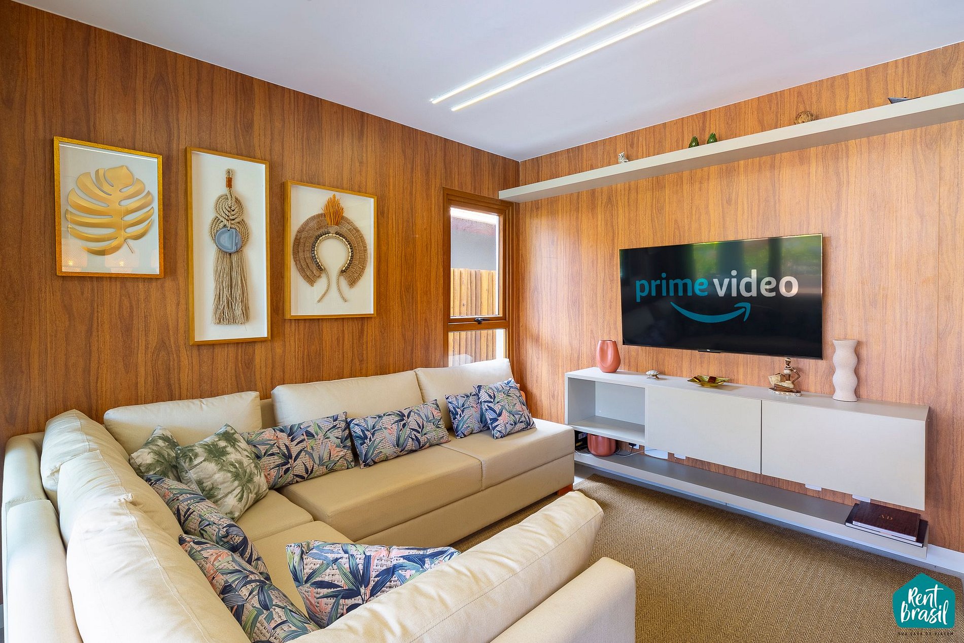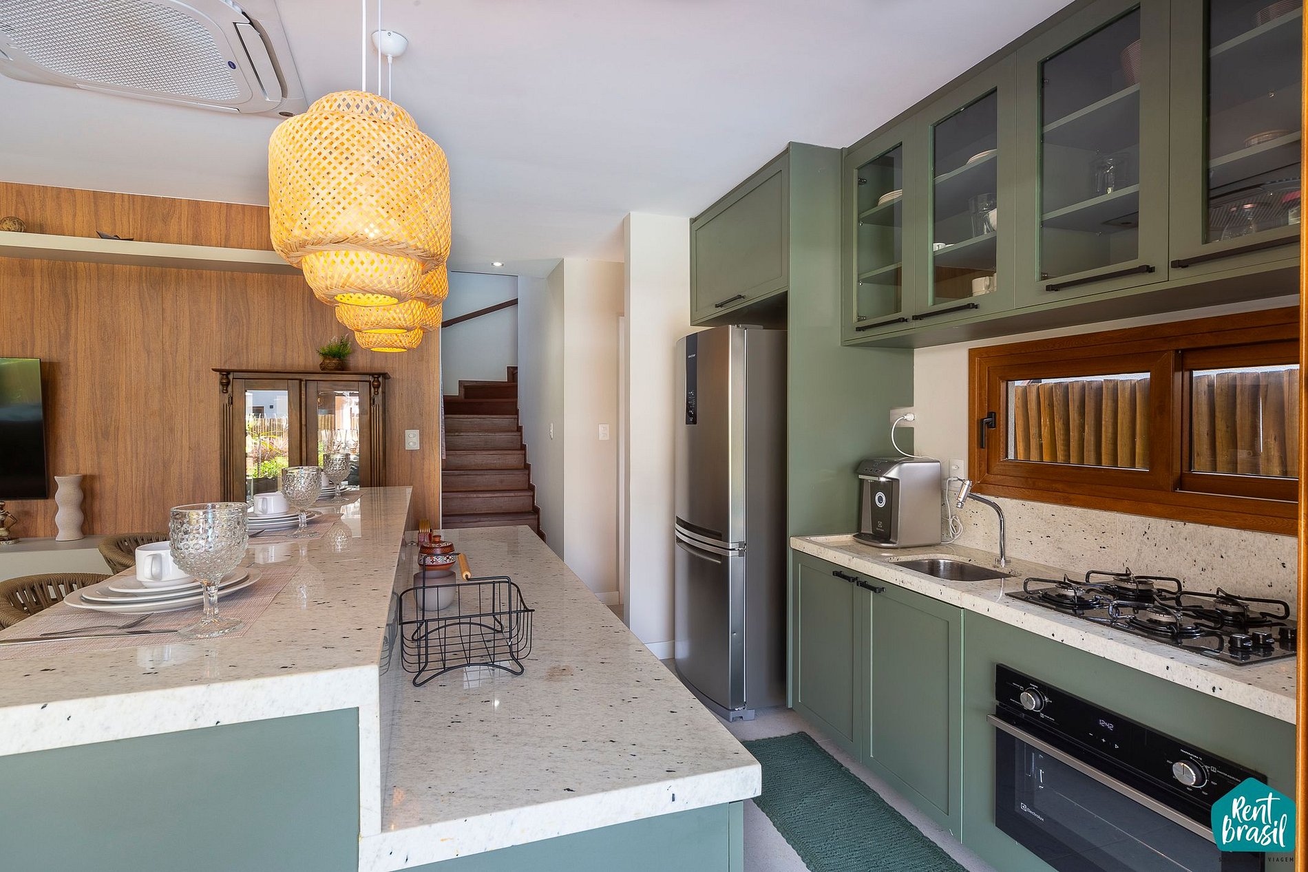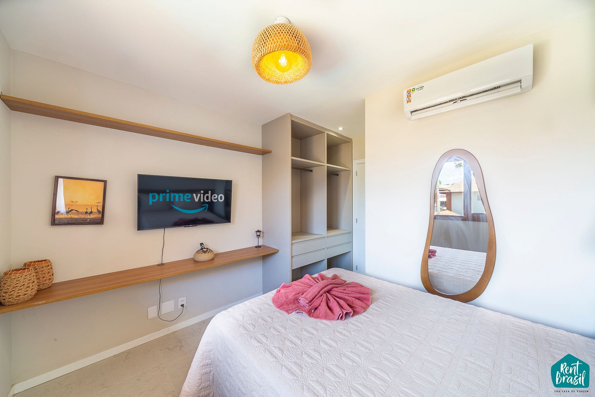 4 suítes climatizadas proporcionando uma melhor noite de sono, uma térrea (com duas camas auxiliares) e três no primeiro andar; Sala de estar com Smart Tv para relaxar depois de um dia na praia e piscina; Cozinha completa com equipamentos de primeira linha: micro-ondas, fogão, geladeira, além de filtro de água e utensílios; Area externa tem o espaço completo para curtir com a família e amigos: area gourmet com churrasqueira para completar o espaço que conta com uma piscina privativa; Area de serviço com varal para sua comodidade.