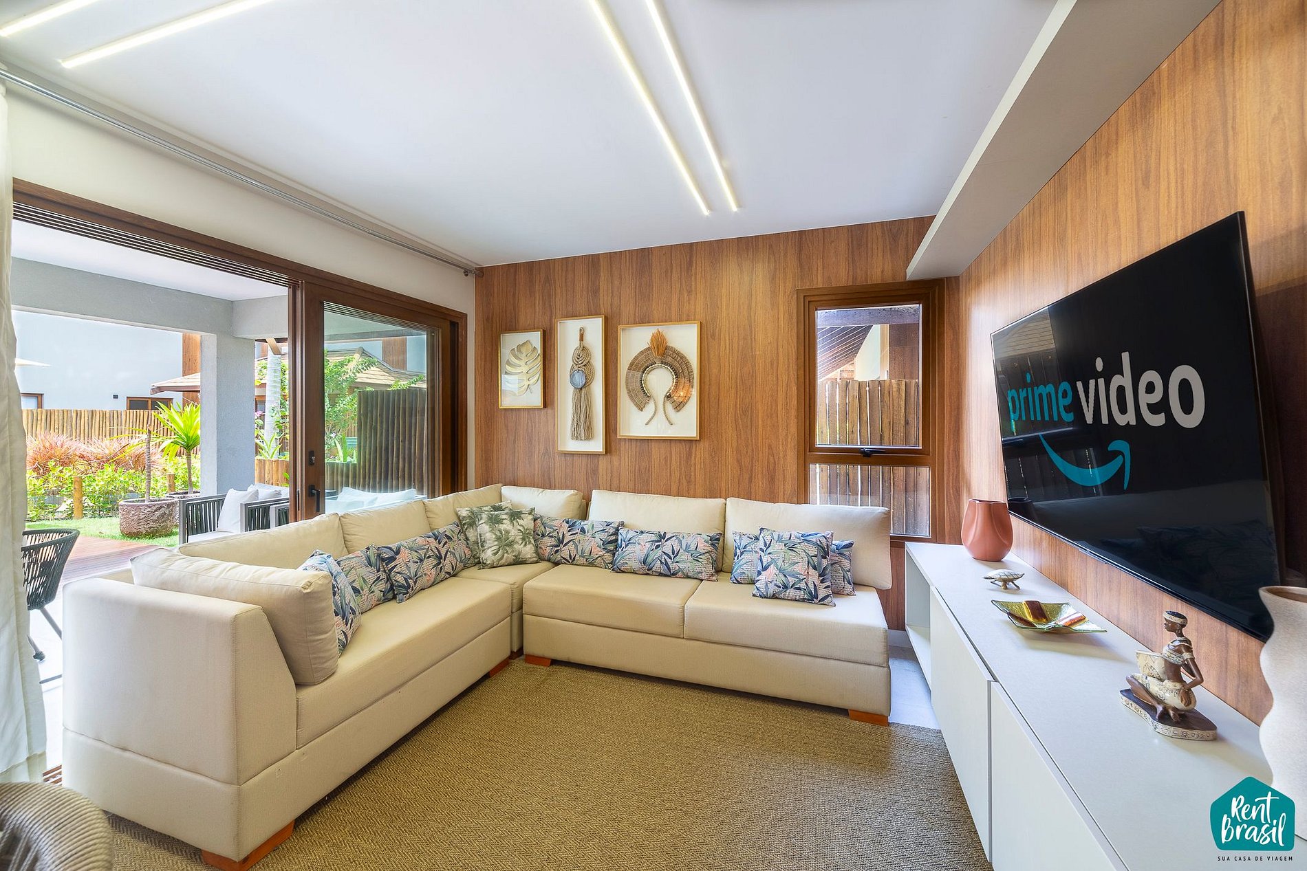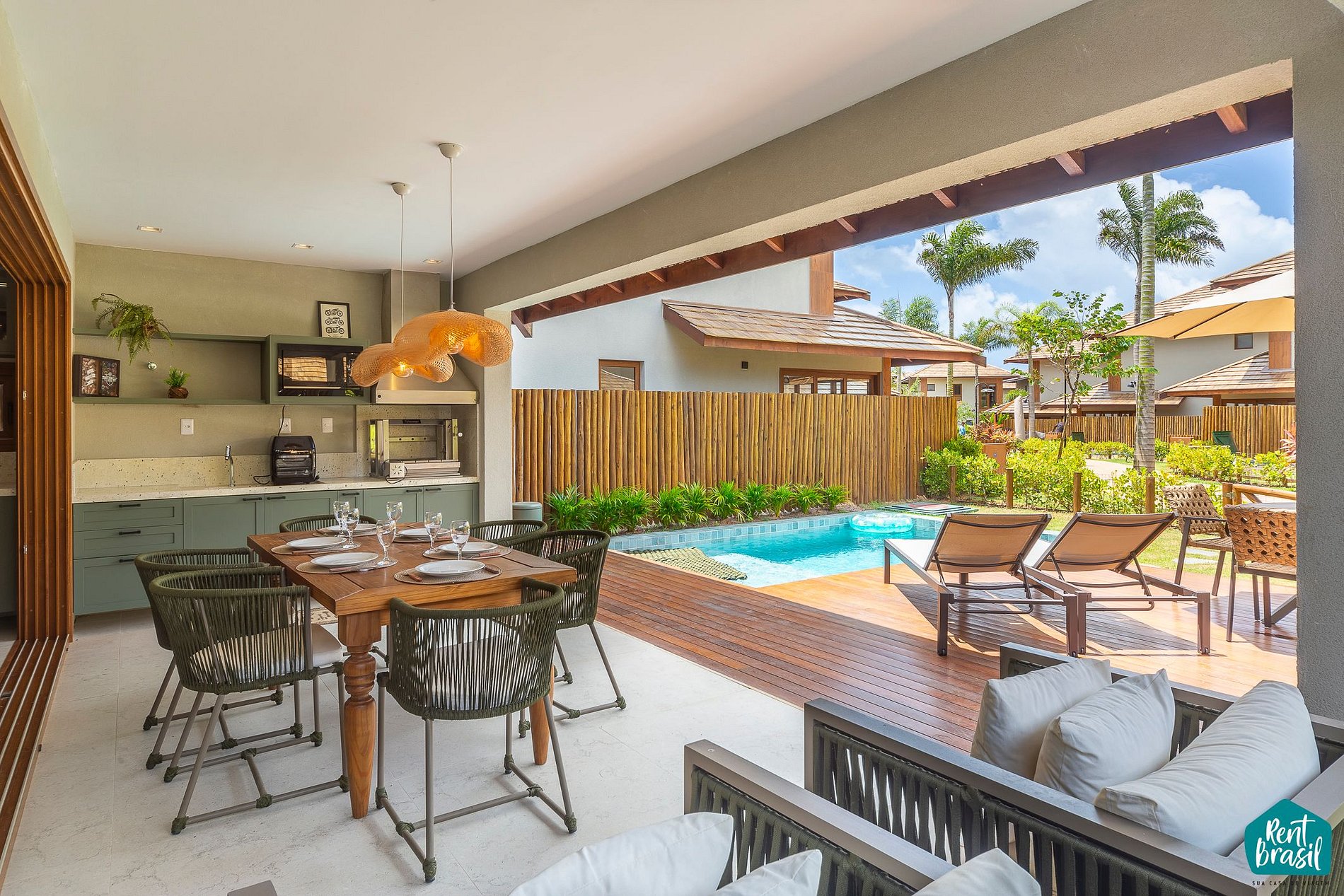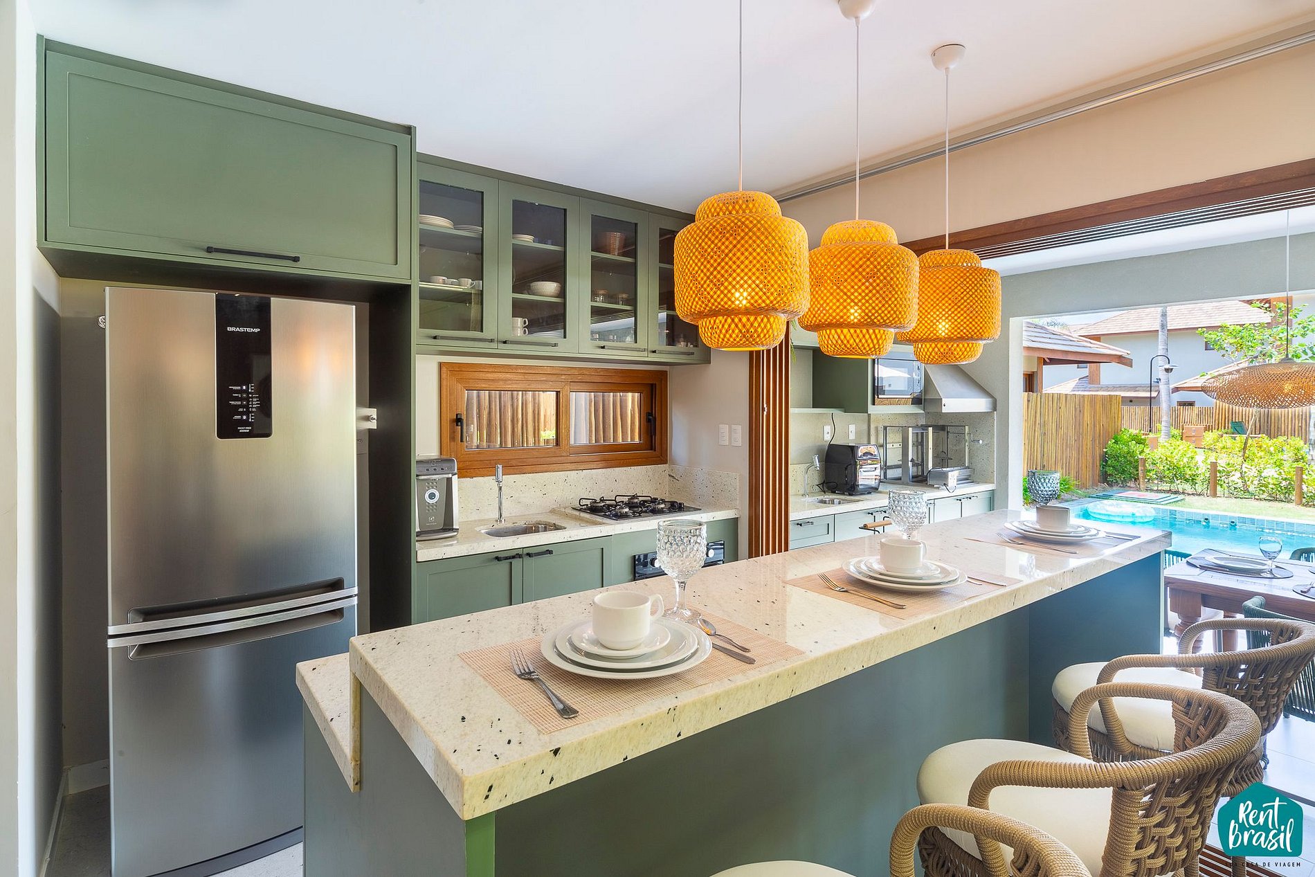 4 suítes climatizadas proporcionando uma melhor noite de sono, uma térrea (com duas camas auxiliares) e três no primeiro andar; Sala de estar com Smart Tv para relaxar depois de um dia na praia e piscina; Cozinha completa com equipamentos de primeira linha: micro-ondas, fogão, geladeira, além de filtro de água e utensílios; Area externa tem o espaço completo para curtir com a família e amigos: area gourmet com churrasqueira para completar o espaço que conta com uma piscina privativa; Area de serviço com varal para sua comodidade.