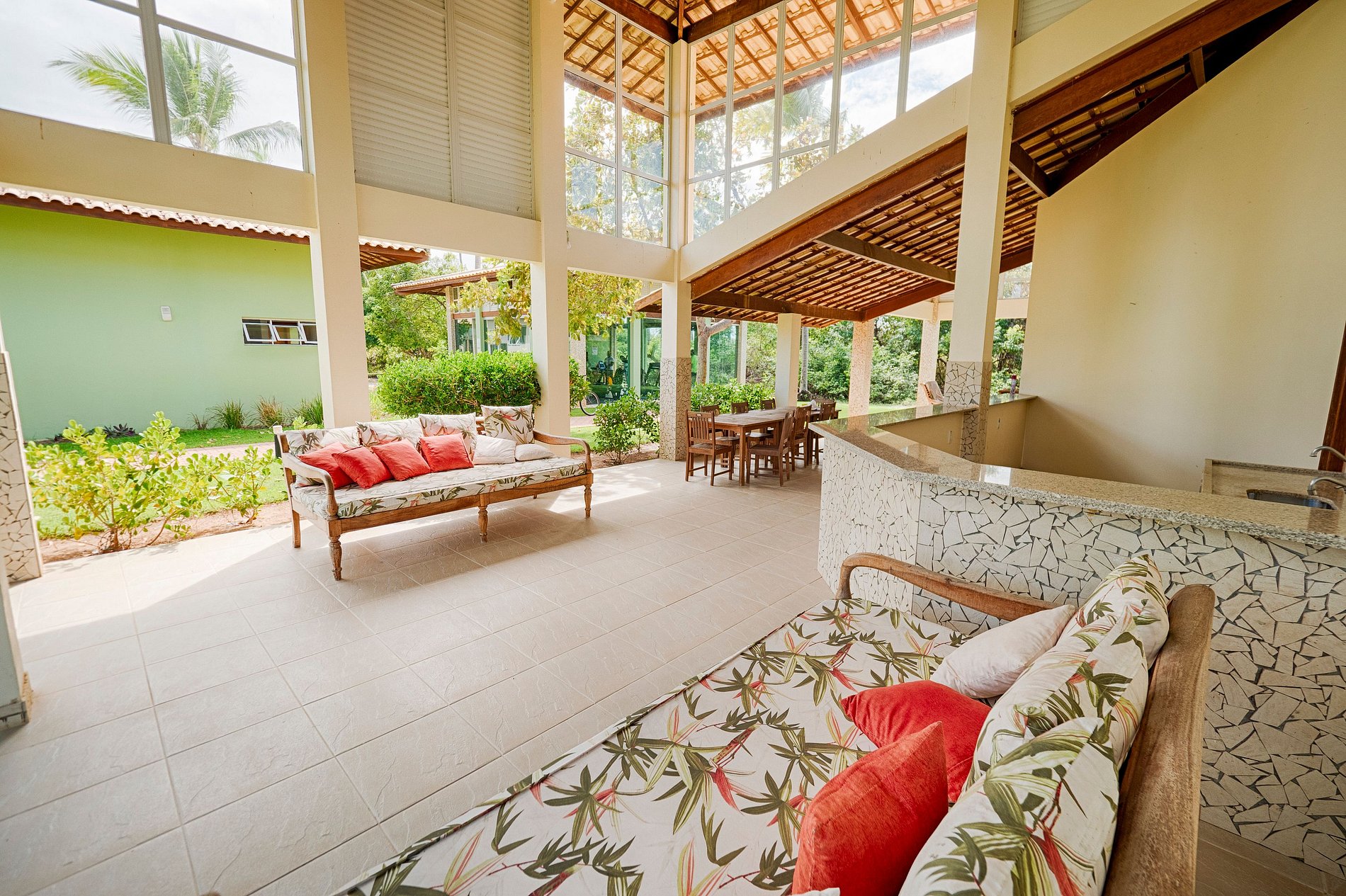 A nossa casa está localizada no Condomínio Vale das Orquídeas, dentro do Complexo Turístico Reserva Imbassaí. O condomínio oferece segurança 24 horas, acesso privativo à praia, um centro de fitness, quadras poliesportivas, um clube com piscina e áreas de lazer.
