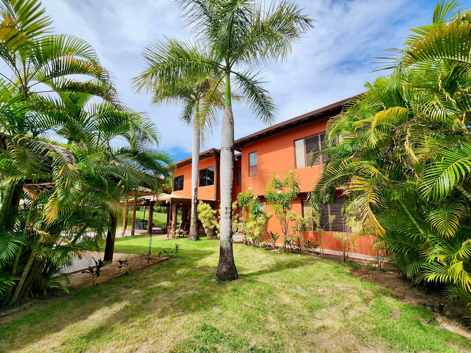 Bem-vindo à nossa casa de alto padrão, A20 Orquídeas! Oferecemos um ambiente confortável, aconchegante, perfeito para desfrutar com amigos e familiares. O imóvel dispõe de 4 suítes climatizadas (02 no andar superior e 02 no térreo), sala de estar e jantar integrada com Smart TV (50"), lavabo. A cozinha americana com decoração moderna, completamente equipada com cooktop, geladeira, micro-ondas, além de utensílios e eletrodomésticos. Há também uma área de serviço com máquina de lavar roupa e uma dependência de empregada (sem ar-condicionado). Acomodamos confortavelmente até 09 pessoas.