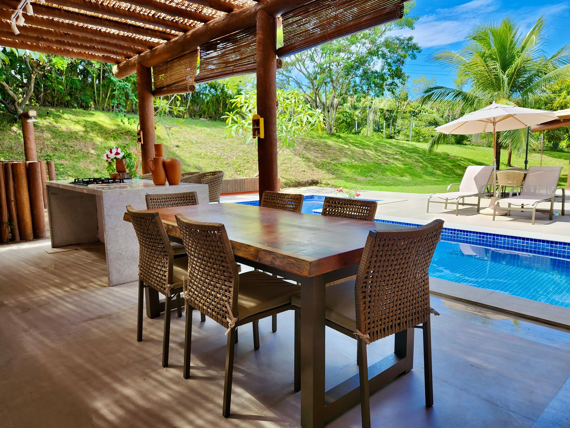 A nossa casa está localizada no Condomínio Vale das Orquídeas, dentro do Complexo Turístico Reserva Imbassaí. O condomínio oferece segurança 24 horas, acesso privativo à praia, um centro de fitness, quadras poliesportivas, um clube com piscina e áreas de lazer.