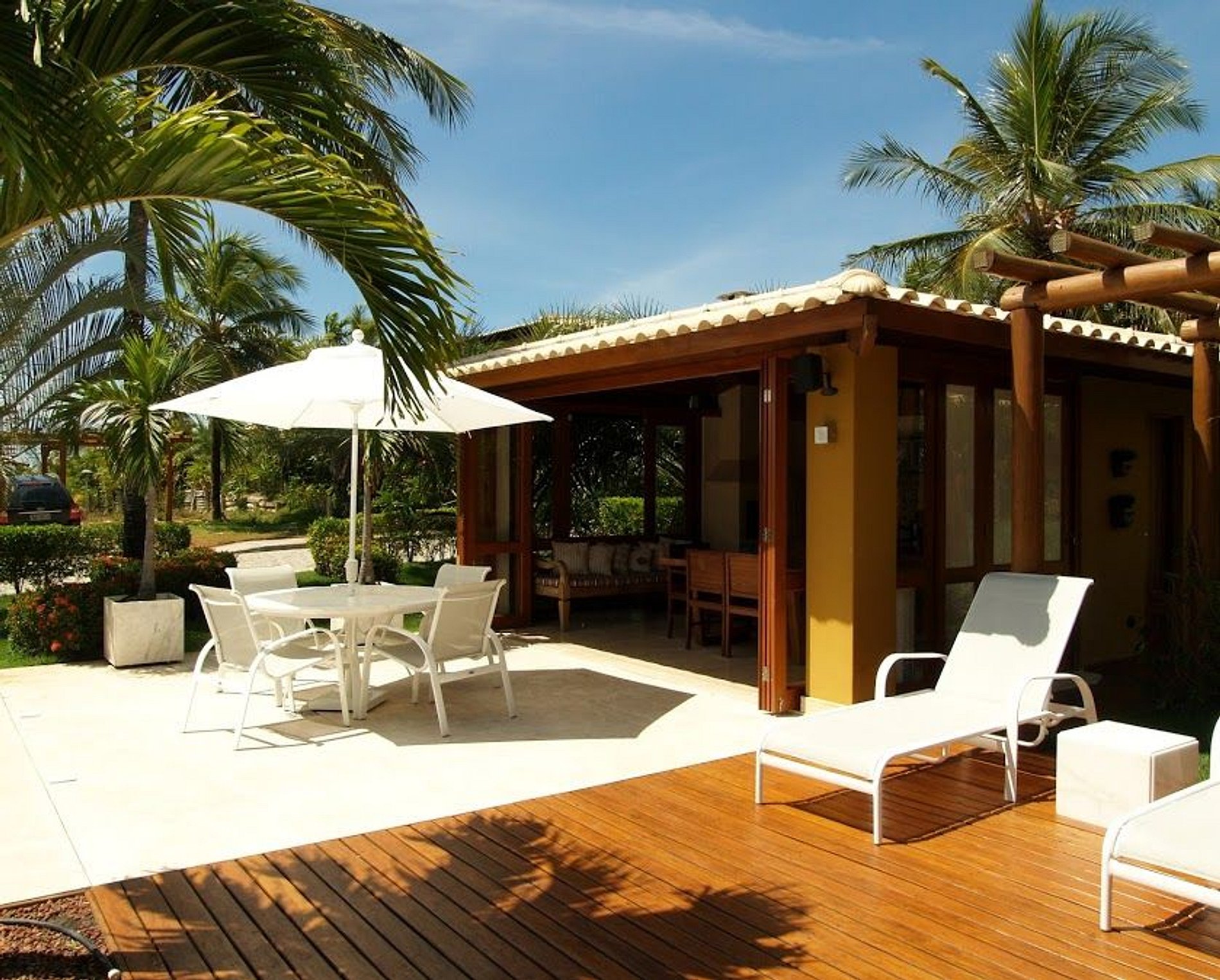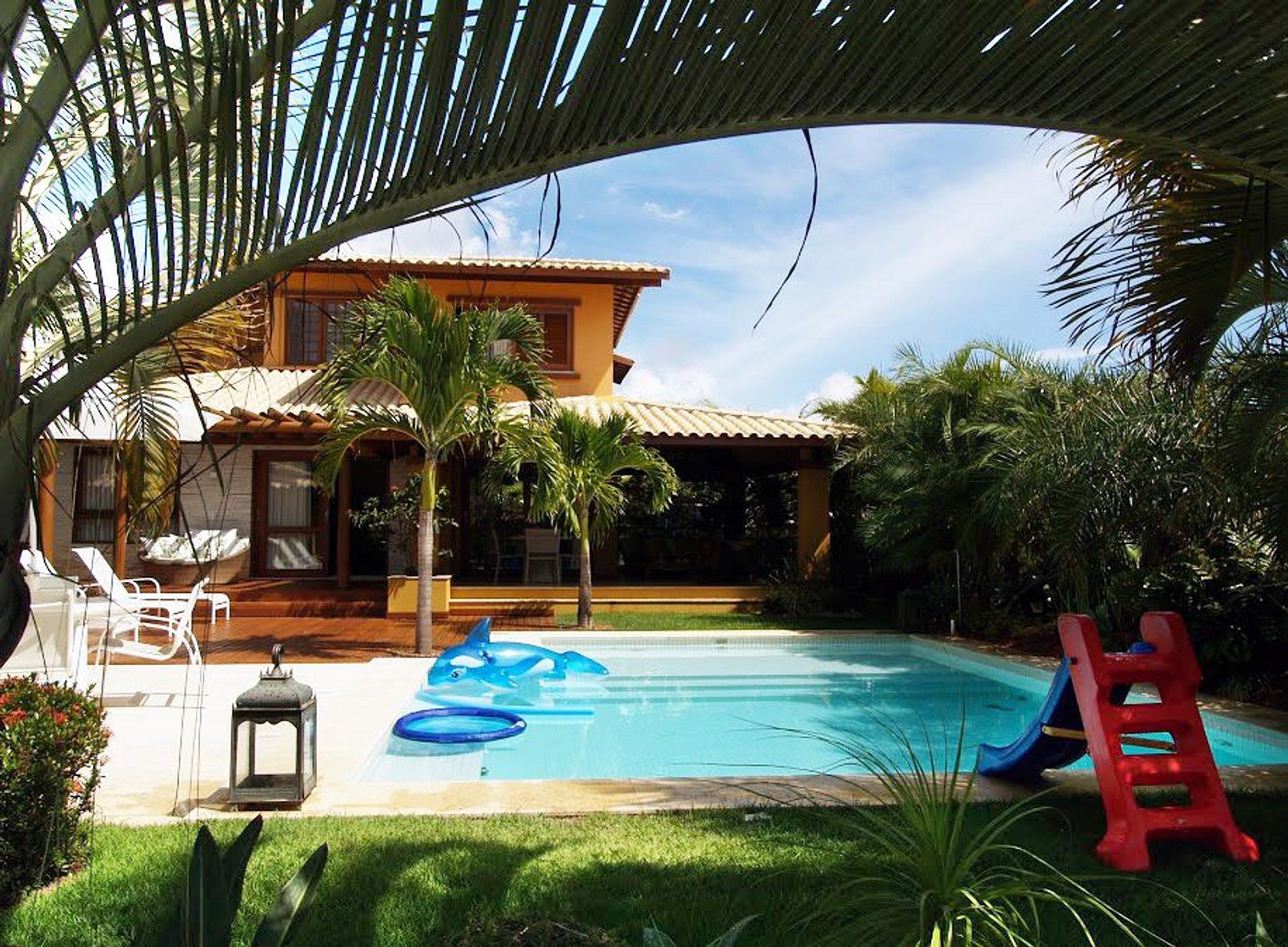 A nossa casa está localizada no Condomínio Alto das Bromélias, dentro do Complexo Turístico Reserva Imbassaí. O condomínio oferece segurança 24 horas, acesso privativo à praia, um centro de fitness, quadras poliesportivas, um clube com piscina e áreas de lazer.