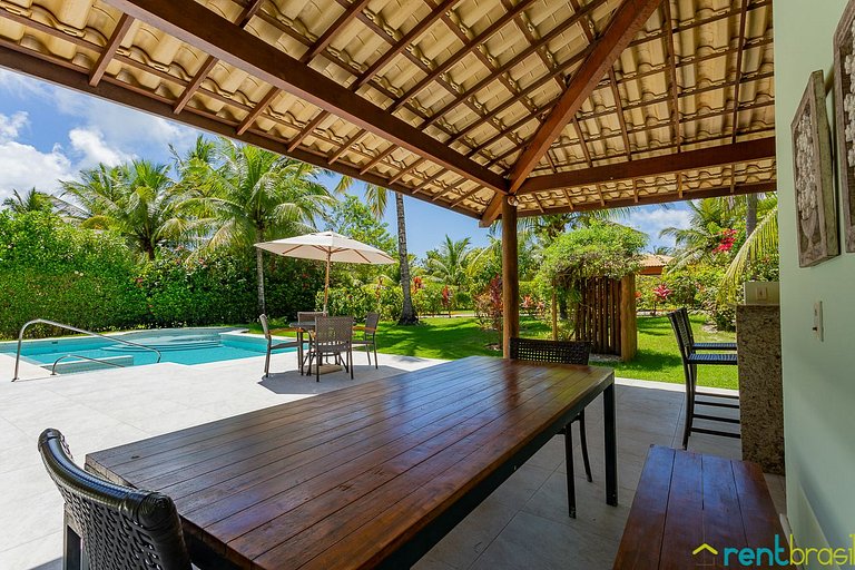 A nossa casa está localizada no Condomínio Vale das Orquídeas, dentro do Complexo Turístico Reserva Imbassaí. O condomínio oferece segurança 24 horas, acesso privativo à praia, um centro de fitness, quadras poliesportivas, um clube com piscina e áreas de lazer.