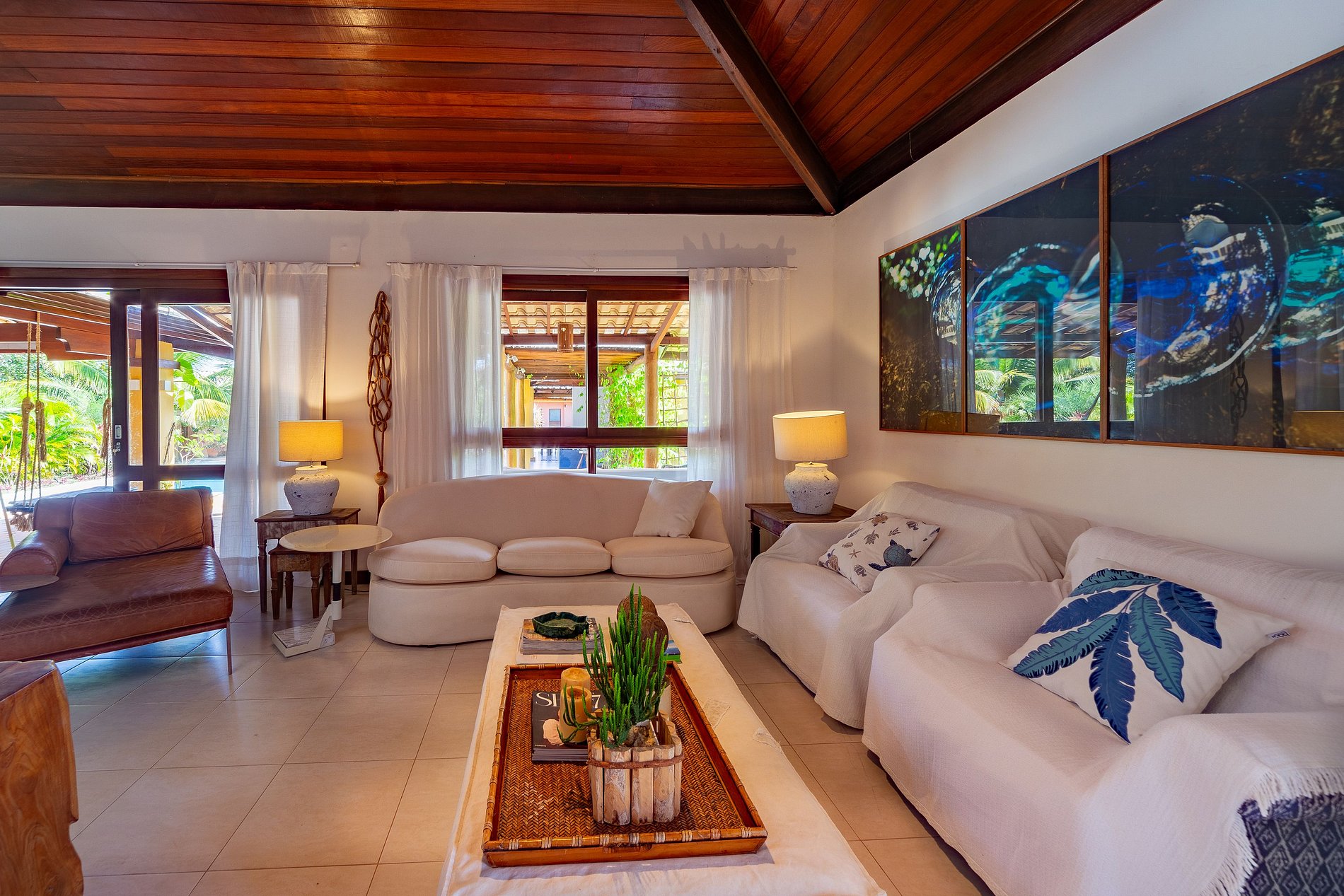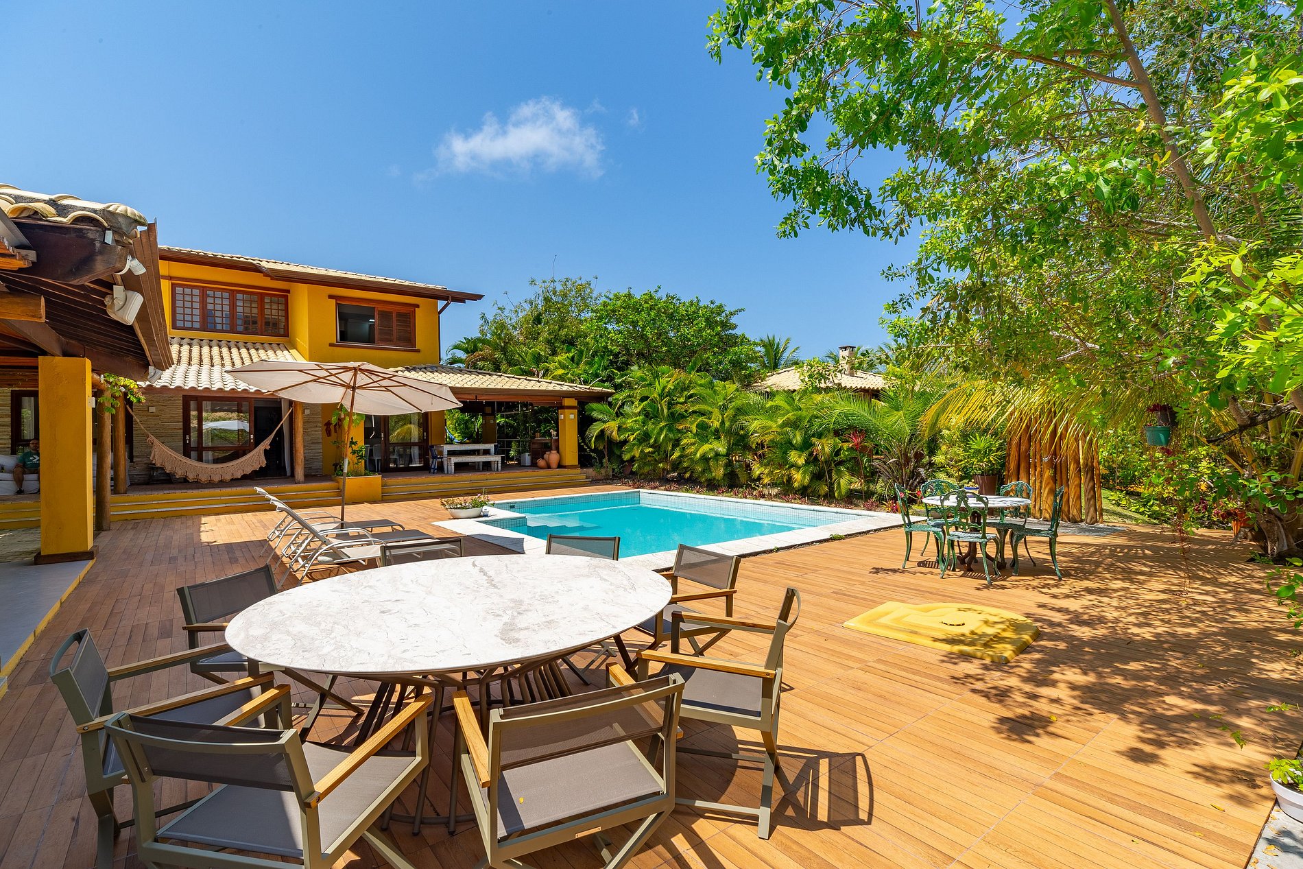 A nossa casa está localizada no Condomínio Alto das Bromélias, dentro do Complexo Turístico Reserva Imbassaí. O condomínio oferece segurança 24 horas, acesso privativo à praia, um centro de fitness, quadras poliesportivas, um clube com piscina e áreas de lazer.