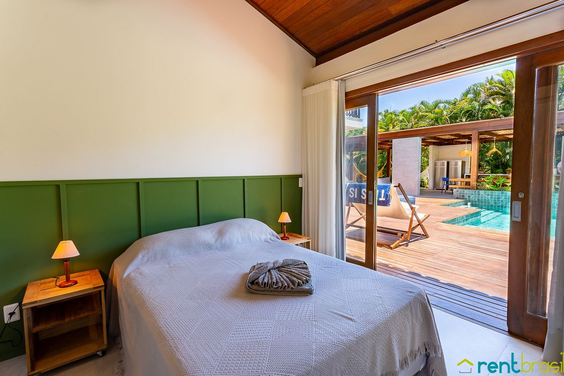 Casa finamente decorada. São 6 suítes e um quarto de serviço, todos climatizados, que acomodam confortavelmente até 13 pessoas, perfeito para famílias grandes ou grupos de amigos! Cada suíte conta com armários, Smart Tv (em 4 suítes) e Wc privativo. Quatro das suítes ficam no andar superior e duas das suítes no andar térreo, no bangalô anexo a casa que fica bem na frente da piscina, com acesso fácil para cadeirantes ou pessoas com mobilidade reduzida.